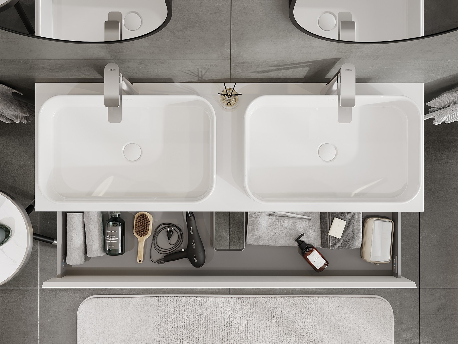 Výrez v zásuvke je navrhnutý tak, aby pojal sifón, ktorý je nevyhnutný v umývadlových inštaláciách. Vďaka tomu môže byť nábytok namontovaný plne funkčne, bez nutnosti vzdávať sa priestoru v zásuvke v prospech inštalácie.