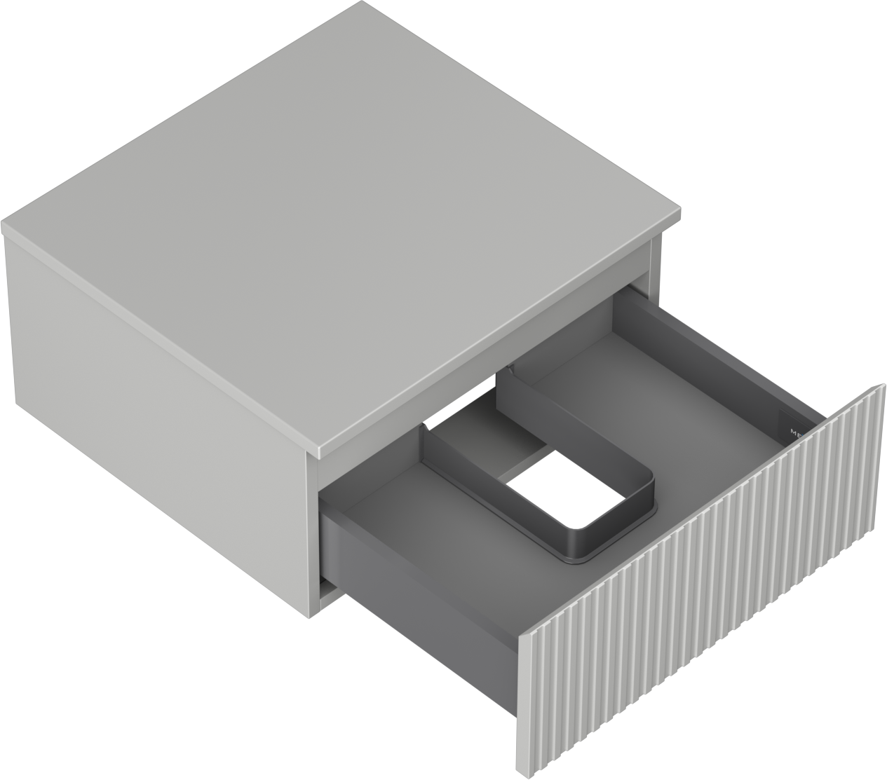 Výrez v zásuvke je navrhnutý tak, aby pojal sifón, ktorý je nevyhnutný v umývadlových inštaláciách. Vďaka tomu môže byť nábytok namontovaný plne funkčne, bez nutnosti vzdávať sa priestoru v zásuvke v prospech inštalácie.
