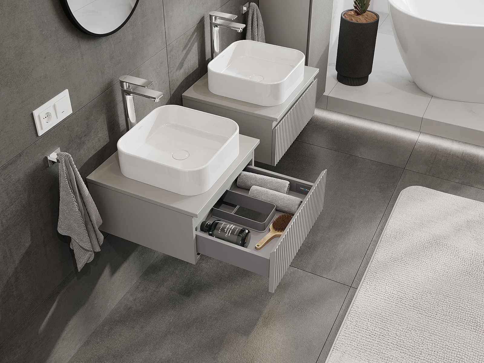 Mexen Rivel kúpeľňová skrinka pod umývadlo 50 cm s doskou, 1 zásuvka, ryhovaná, šedá matná - 91A20-05023-1-BFC62