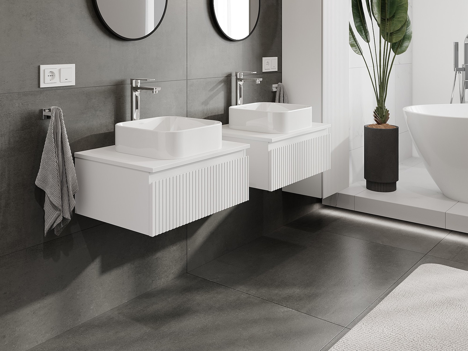 Naše modulárne kúpeľňové nábytkové prvky možno kombinovať v rôznych farebných konfiguráciách, čo umožňuje úplnú personalizáciu. Môžete si vybrať vzhľad aj funkcie jednotlivých prvkov, čo umožňuje prispôsobiť nábytok vašim vlastným štýlovým a používateľským preferenciám.