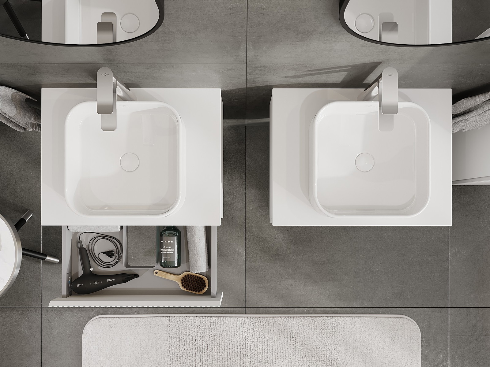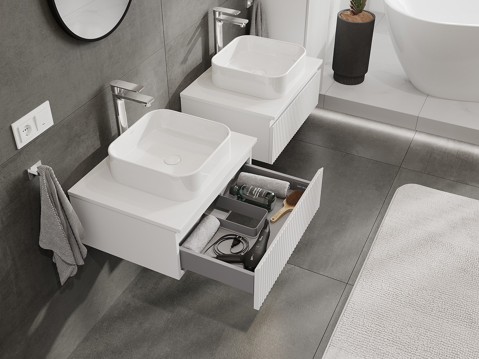 Mexen Rivel kúpeľňová skrinka pod umývadlo 60 cm s doskou, 1 zásuvka, ryhovaná, biela matná - 91A20-06023-1-BFC01