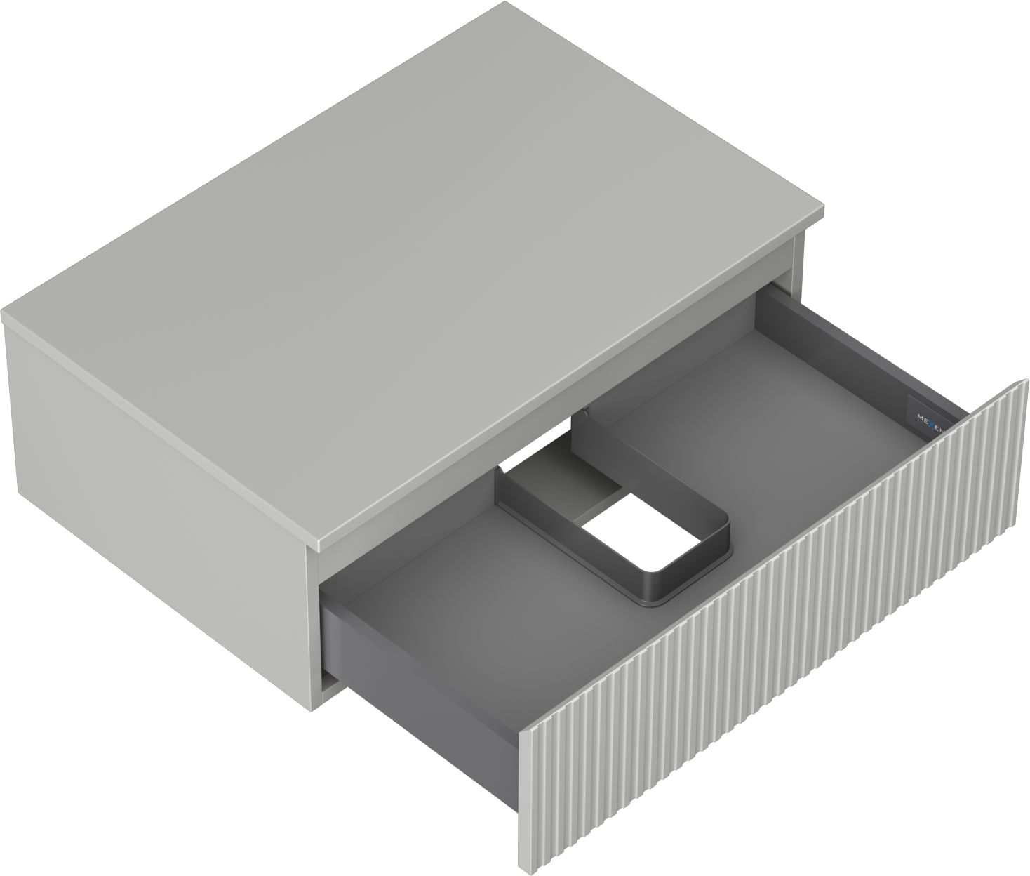 Výrez v zásuvke je navrhnutý tak, aby pojal sifón, ktorý je nevyhnutný v umývadlových inštaláciách. Vďaka tomu môže byť nábytok namontovaný plne funkčne, bez nutnosti vzdávať sa priestoru v zásuvke v prospech inštalácie.