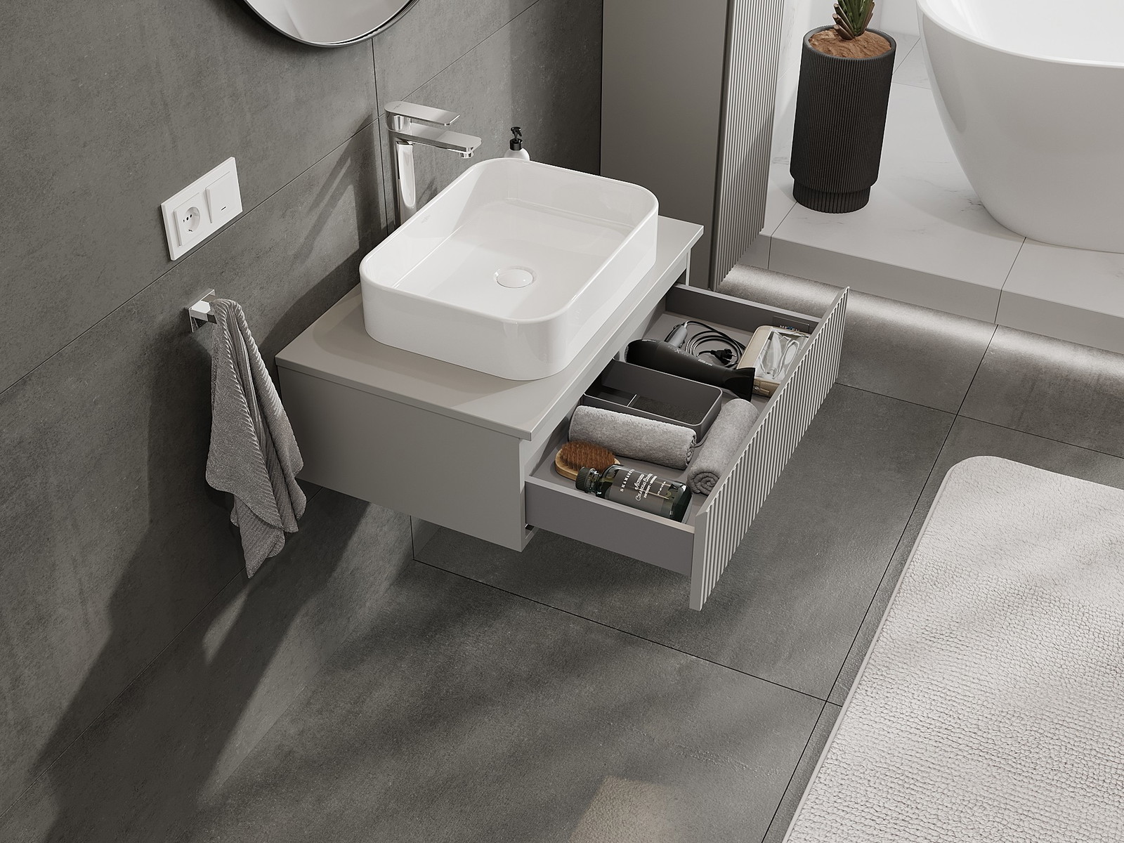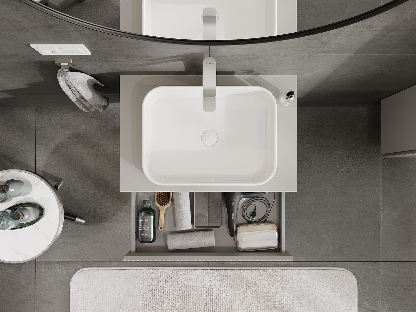 Mexen Rivel kúpeľňová skrinka pod umývadlo 70 cm s doskou, 1 zásuvka, ryhovaná, sivý mat - 91A20-07023-1-BFC62