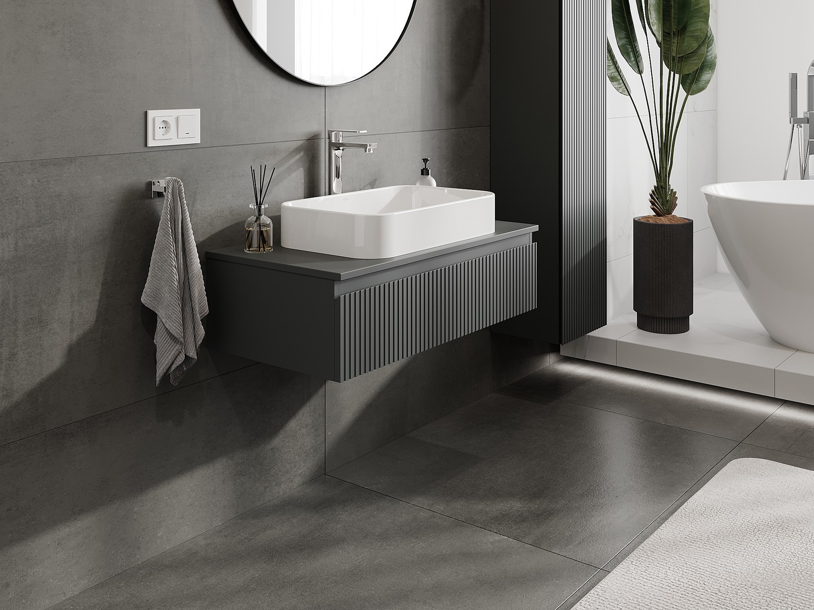 Vďaka pevným materiálom, precíznemu prevedeniu a moderným technologickým riešeniam, produkt poskytuje pohodlie používania, odolnosť voči vlhkosti a zmenám teploty, ako aj elegantný vzhľad, ktorý sa hodí k rôznym štýlom kúpeľní.