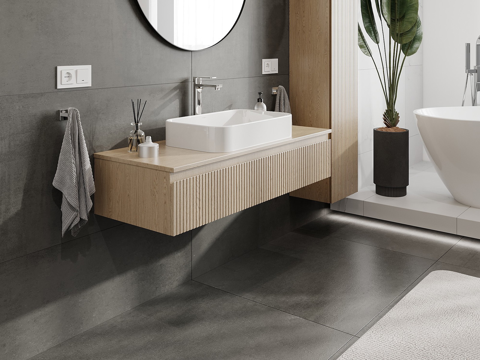 Vďaka pevným materiálom, precíznemu prevedeniu a moderným technologickým riešeniam, produkt poskytuje pohodlie používania, odolnosť voči vlhkosti a zmenám teploty, ako aj elegantný vzhľad, ktorý sa hodí k rôznym štýlom kúpeľní.
