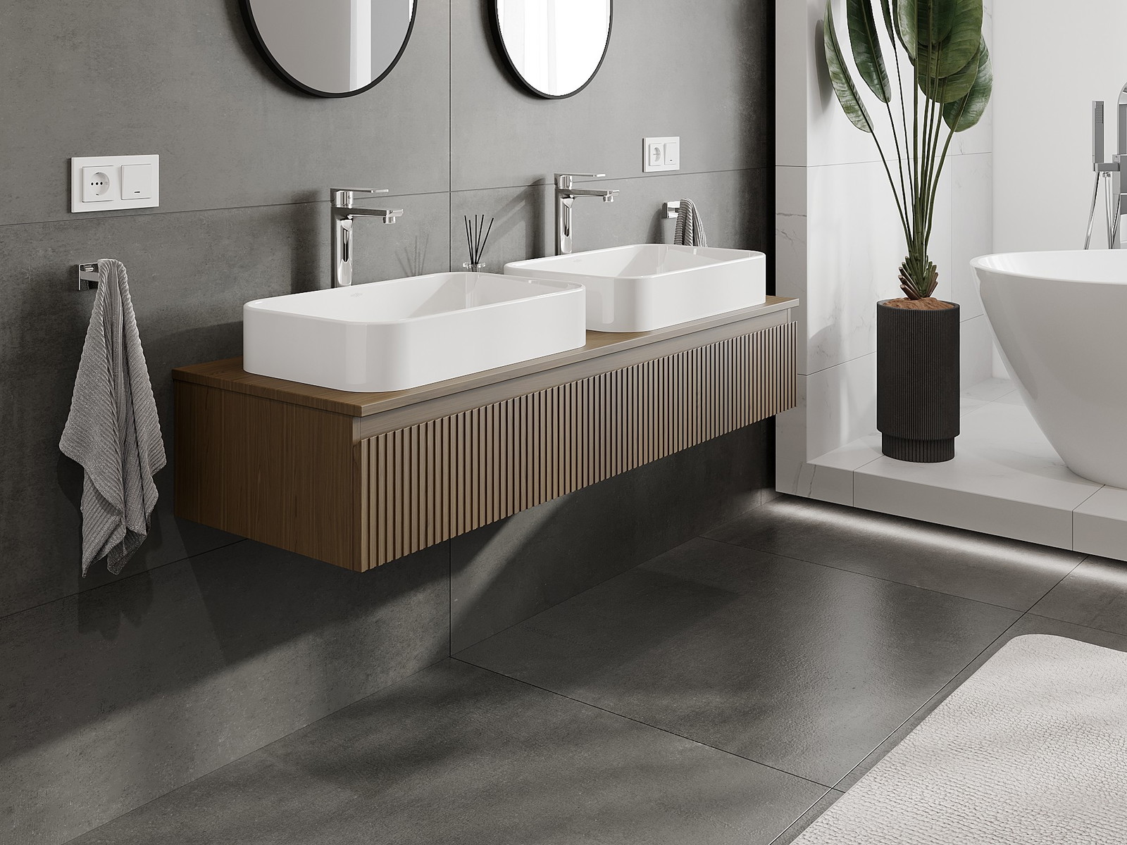 Vďaka pevným materiálom, precíznemu prevedeniu a moderným technologickým riešeniam, produkt poskytuje pohodlie používania, odolnosť voči vlhkosti a zmenám teploty, ako aj elegantný vzhľad, ktorý sa hodí k rôznym štýlom kúpeľní.