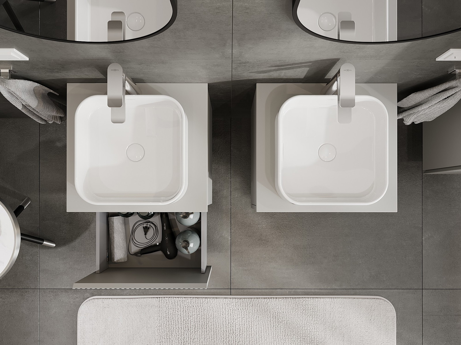 Mexen Rivel kúpeľňová skrinka pod umývadlo 50 cm s doskou, 1 zásuvka, ryhovaná, sivá matná - 91A20-05047-1-BFC62