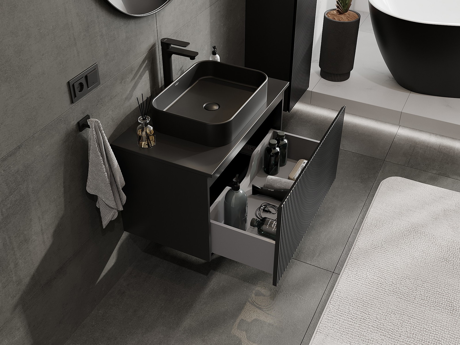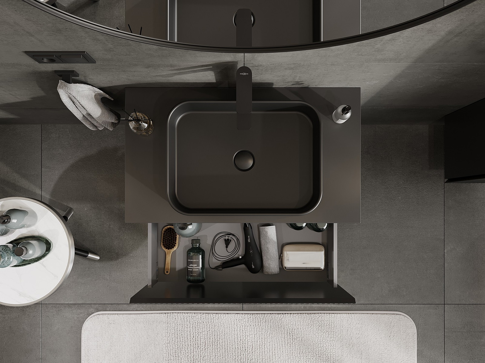 Výrez v zásuvke je navrhnutý tak, aby pojal sifón, ktorý je nevyhnutný v umývadlových inštaláciách. Vďaka tomu môže byť nábytok namontovaný plne funkčne, bez nutnosti vzdávať sa priestoru v zásuvke v prospech inštalácie.