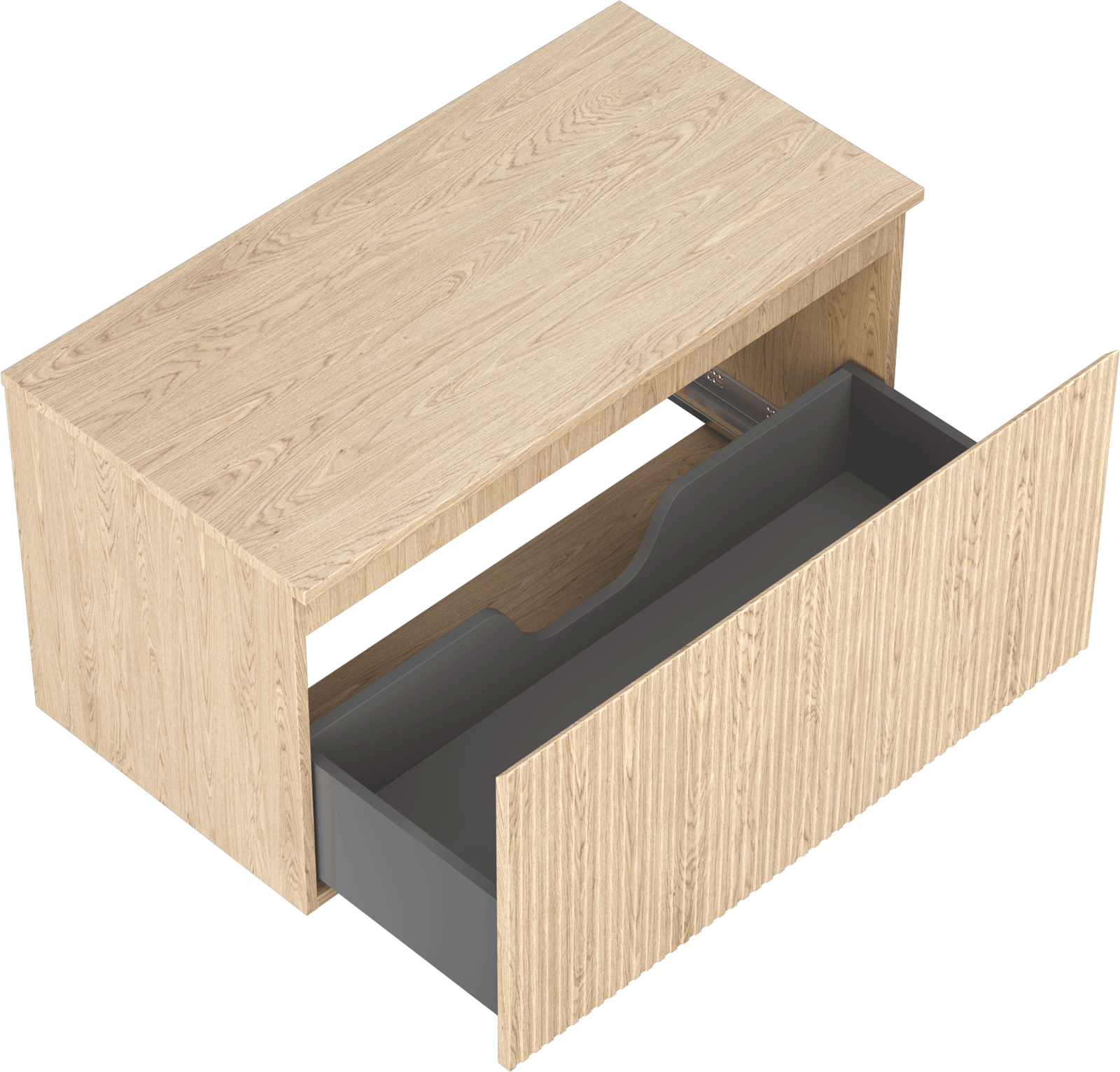 Výrez v zásuvke je navrhnutý tak, aby pojal sifón, ktorý je nevyhnutný v umývadlových inštaláciách. Vďaka tomu môže byť nábytok namontovaný plne funkčne, bez nutnosti vzdávať sa priestoru v zásuvke v prospech inštalácie.