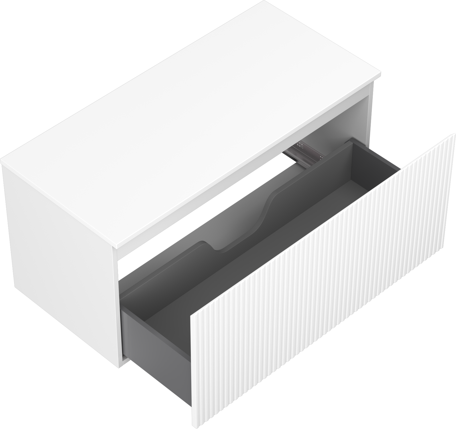 Výrez v zásuvke je navrhnutý tak, aby pojal sifón, ktorý je nevyhnutný v umývadlových inštaláciách. Vďaka tomu môže byť nábytok namontovaný plne funkčne, bez nutnosti vzdávať sa priestoru v zásuvke v prospech inštalácie.