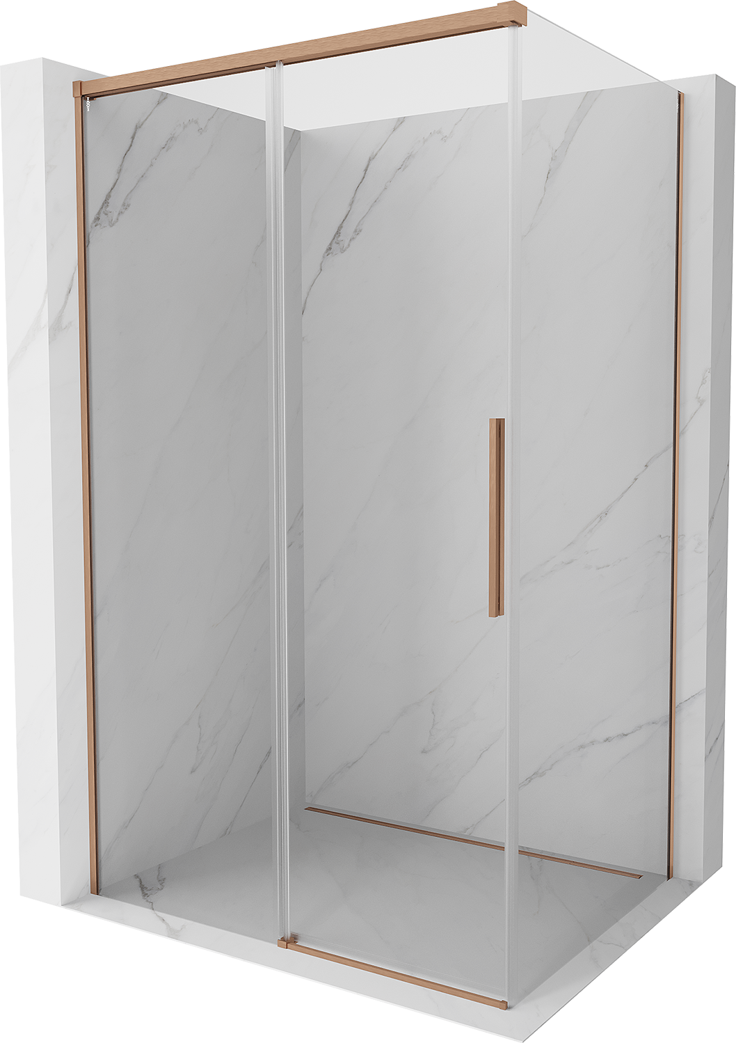 Mexen Rox sprchovací kút posuvný 100 x 85 cm, transparentný, brúsená meď - 8C2-100-085-65-00