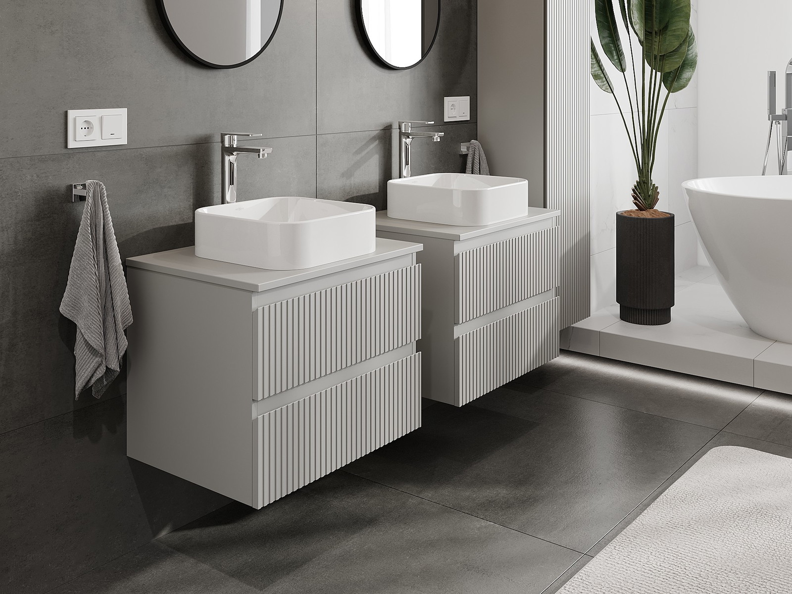 Naše modulárne kúpeľňové nábytkové prvky možno kombinovať v rôznych farebných konfiguráciách, čo umožňuje úplnú personalizáciu. Môžete si vybrať vzhľad aj funkcie jednotlivých prvkov, čo umožňuje prispôsobiť nábytok vašim vlastným štýlovým a používateľským preferenciám.