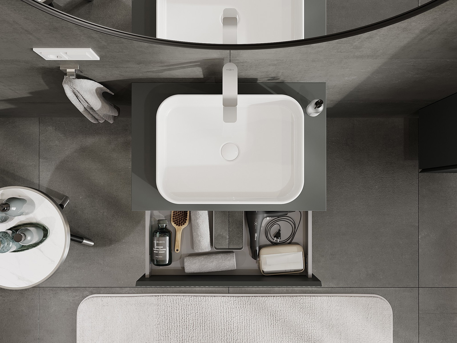 Výrez v zásuvke je navrhnutý tak, aby pojal sifón, ktorý je nevyhnutný v umývadlových inštaláciách. Vďaka tomu môže byť nábytok namontovaný plne funkčne, bez nutnosti vzdávať sa priestoru v zásuvke v prospech inštalácie.
