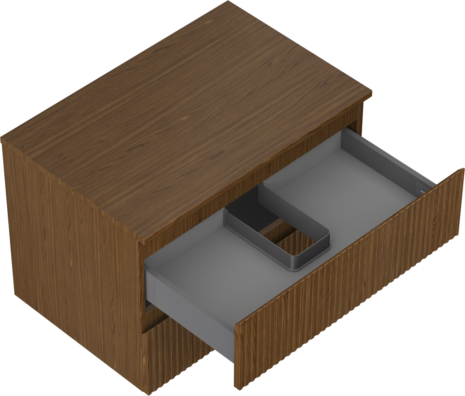 Výrez v zásuvke je navrhnutý tak, aby pojal sifón, ktorý je nevyhnutný v umývadlových inštaláciách. Vďaka tomu môže byť nábytok namontovaný plne funkčne, bez nutnosti vzdávať sa priestoru v zásuvke v prospech inštalácie.