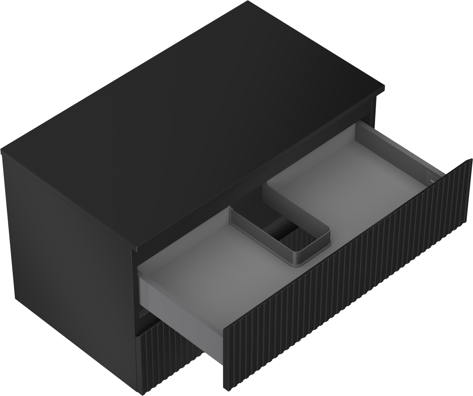 Výrez v zásuvke je navrhnutý tak, aby pojal sifón, ktorý je nevyhnutný v umývadlových inštaláciách. Vďaka tomu môže byť nábytok namontovaný plne funkčne, bez nutnosti vzdávať sa priestoru v zásuvke v prospech inštalácie.