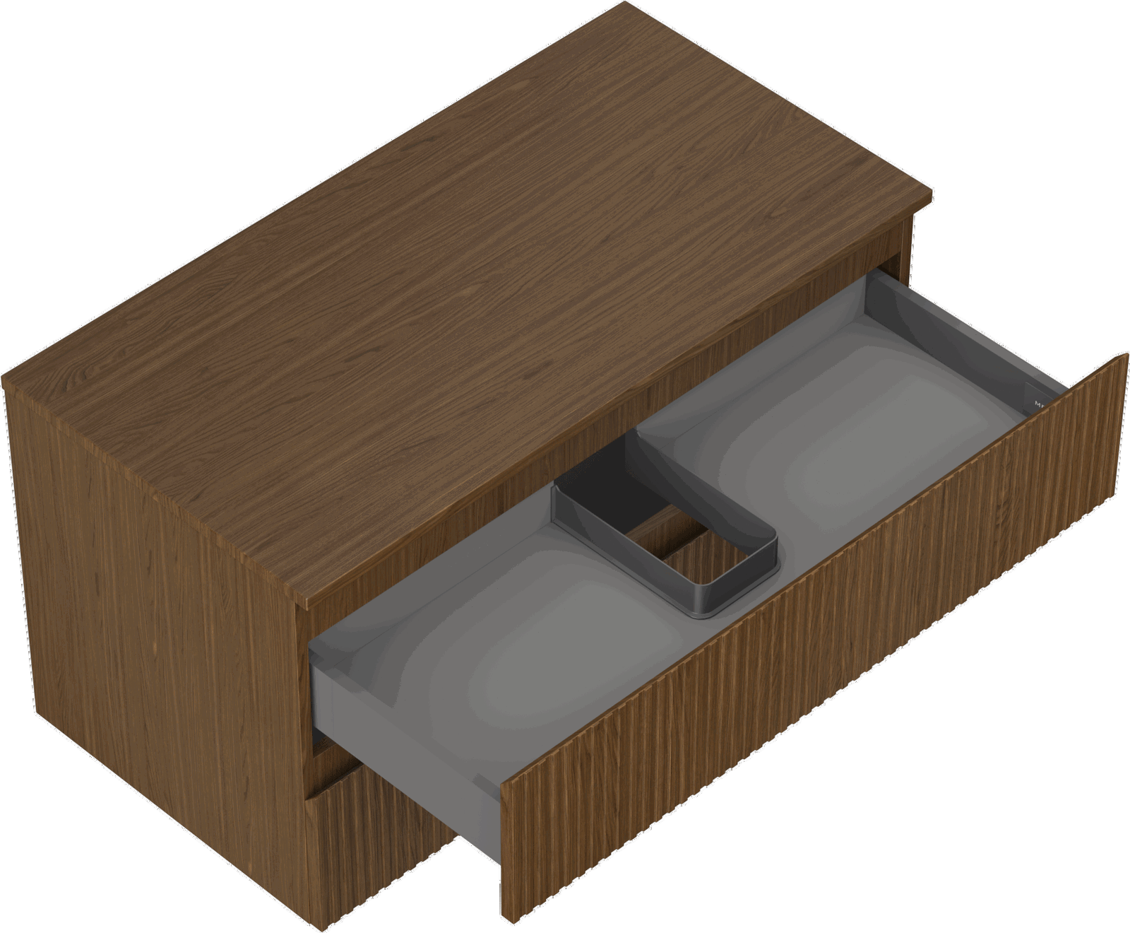 Výrez v zásuvke je navrhnutý tak, aby pojal sifón, ktorý je nevyhnutný v umývadlových inštaláciách. Vďaka tomu môže byť nábytok namontovaný plne funkčne, bez nutnosti vzdávať sa priestoru v zásuvke v prospech inštalácie.