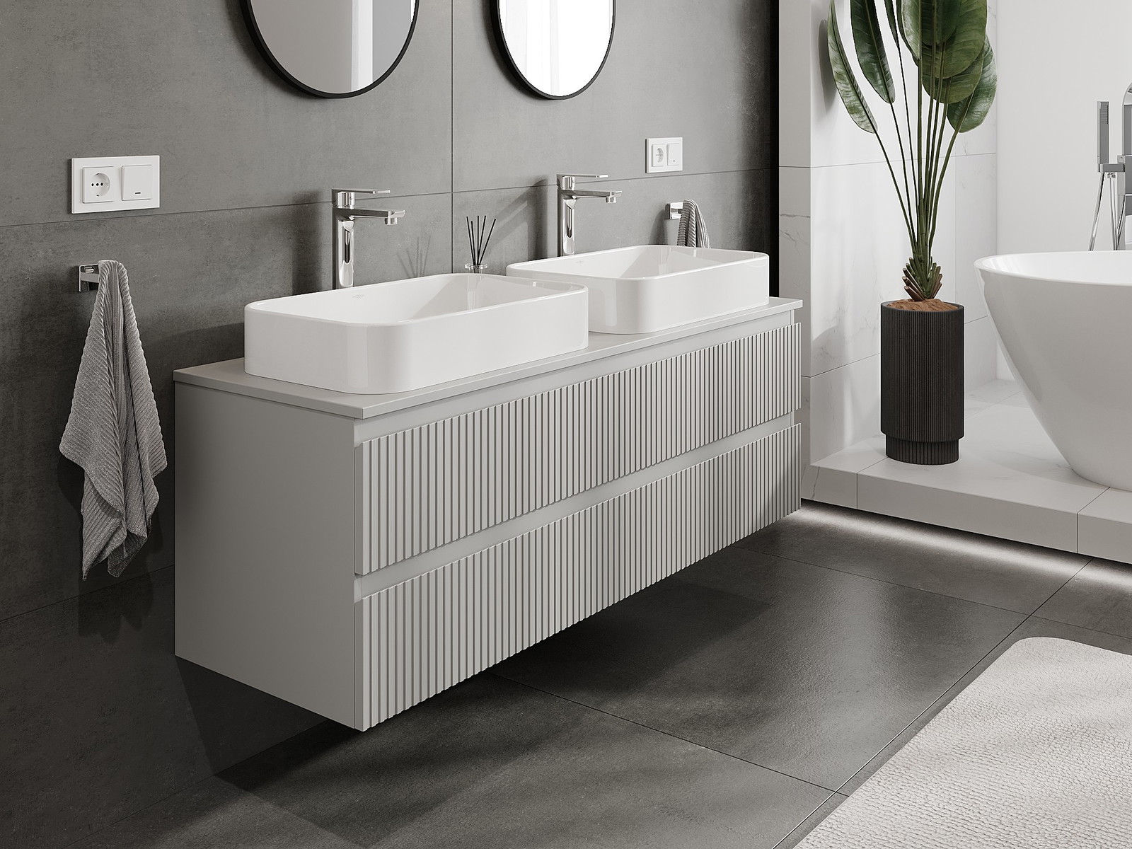Naše modulárne kúpeľňové nábytkové prvky možno kombinovať v rôznych farebných konfiguráciách, čo umožňuje úplnú personalizáciu. Môžete si vybrať vzhľad aj funkcie jednotlivých prvkov, čo umožňuje prispôsobiť nábytok vašim vlastným štýlovým a používateľským preferenciám.