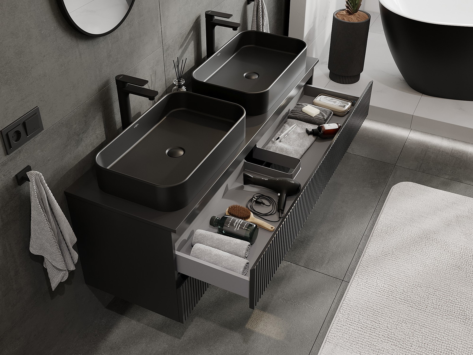 Výrez v zásuvke je navrhnutý tak, aby pojal sifón, ktorý je nevyhnutný v umývadlových inštaláciách. Vďaka tomu môže byť nábytok namontovaný plne funkčne, bez nutnosti vzdávať sa priestoru v zásuvke v prospech inštalácie.