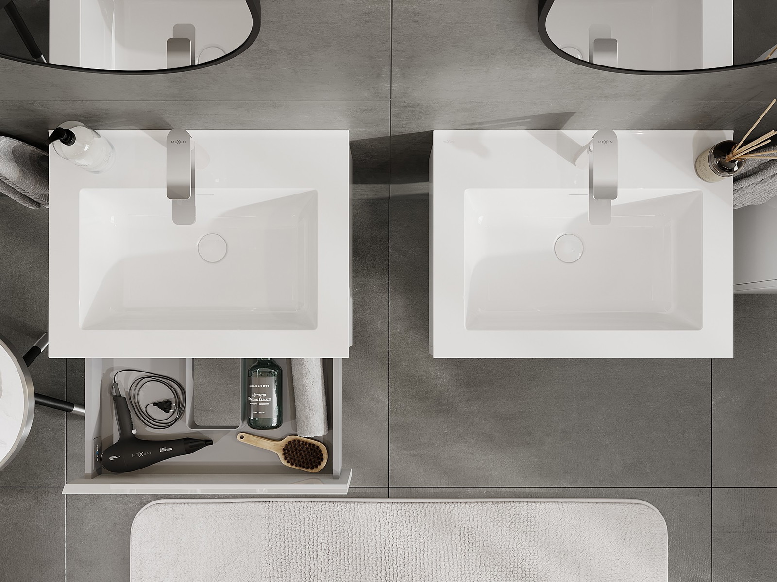 Mexen Orio kúpeľňová skrinka 60 cm s umývadlom Otis, 1 zásuvka, biely lesk - 91A10-06023-1-BF00-W18M00