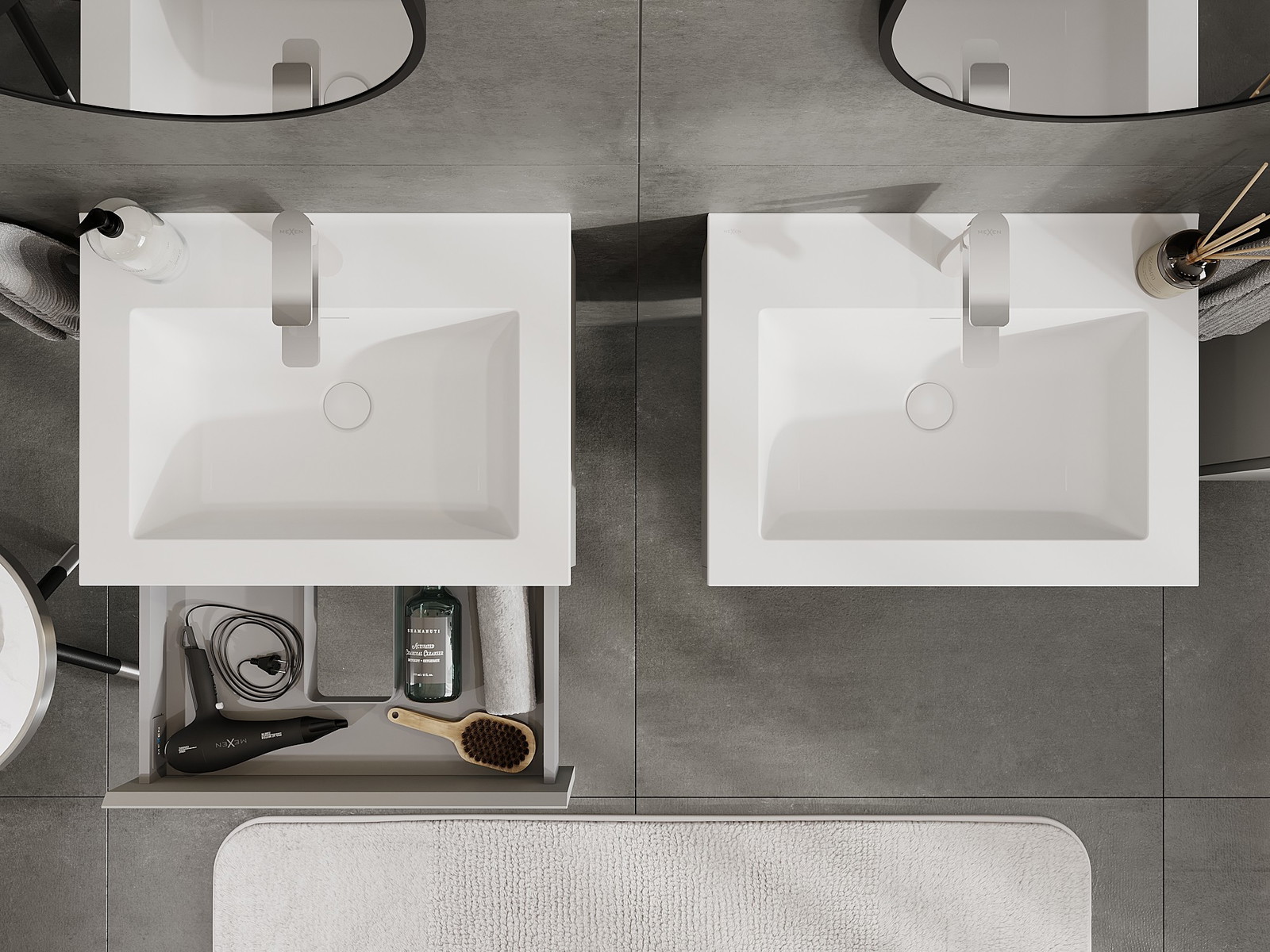Mexen Orio kúpeľňová skrinka 60 cm s umývadlom Otis, 1 zásuvka, sivá matná/biela matná - 91A10-06023-1-BF62-W18M01