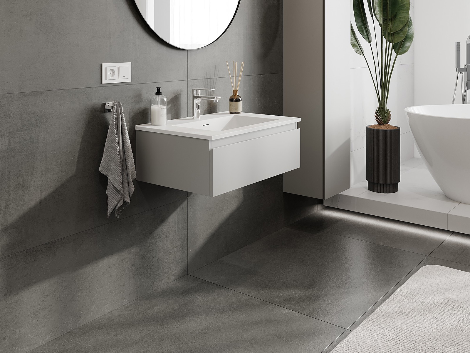 Vďaka pevným materiálom, precíznemu prevedeniu a moderným technologickým riešeniam, produkt poskytuje pohodlie používania, odolnosť voči vlhkosti a zmenám teploty, ako aj elegantný vzhľad, ktorý sa hodí k rôznym štýlom kúpeľní.