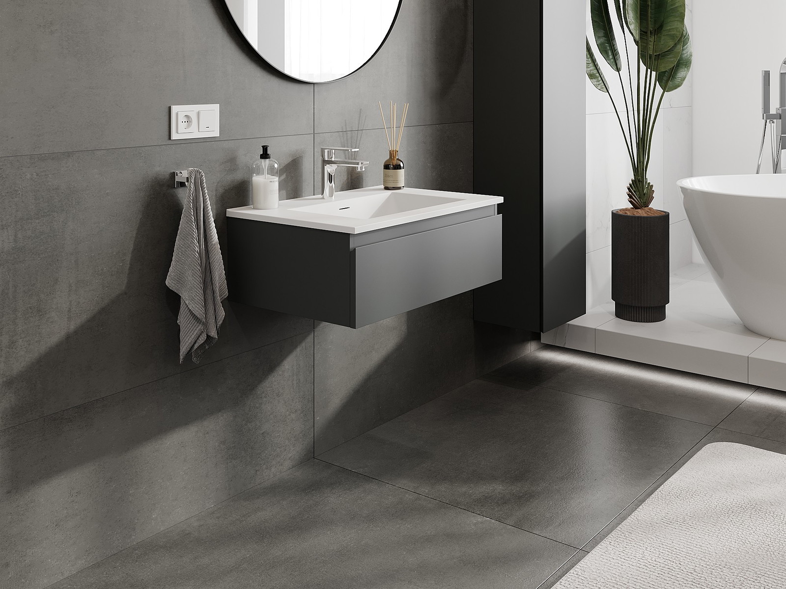 Vďaka pevným materiálom, precíznemu prevedeniu a moderným technologickým riešeniam, produkt poskytuje pohodlie používania, odolnosť voči vlhkosti a zmenám teploty, ako aj elegantný vzhľad, ktorý sa hodí k rôznym štýlom kúpeľní.