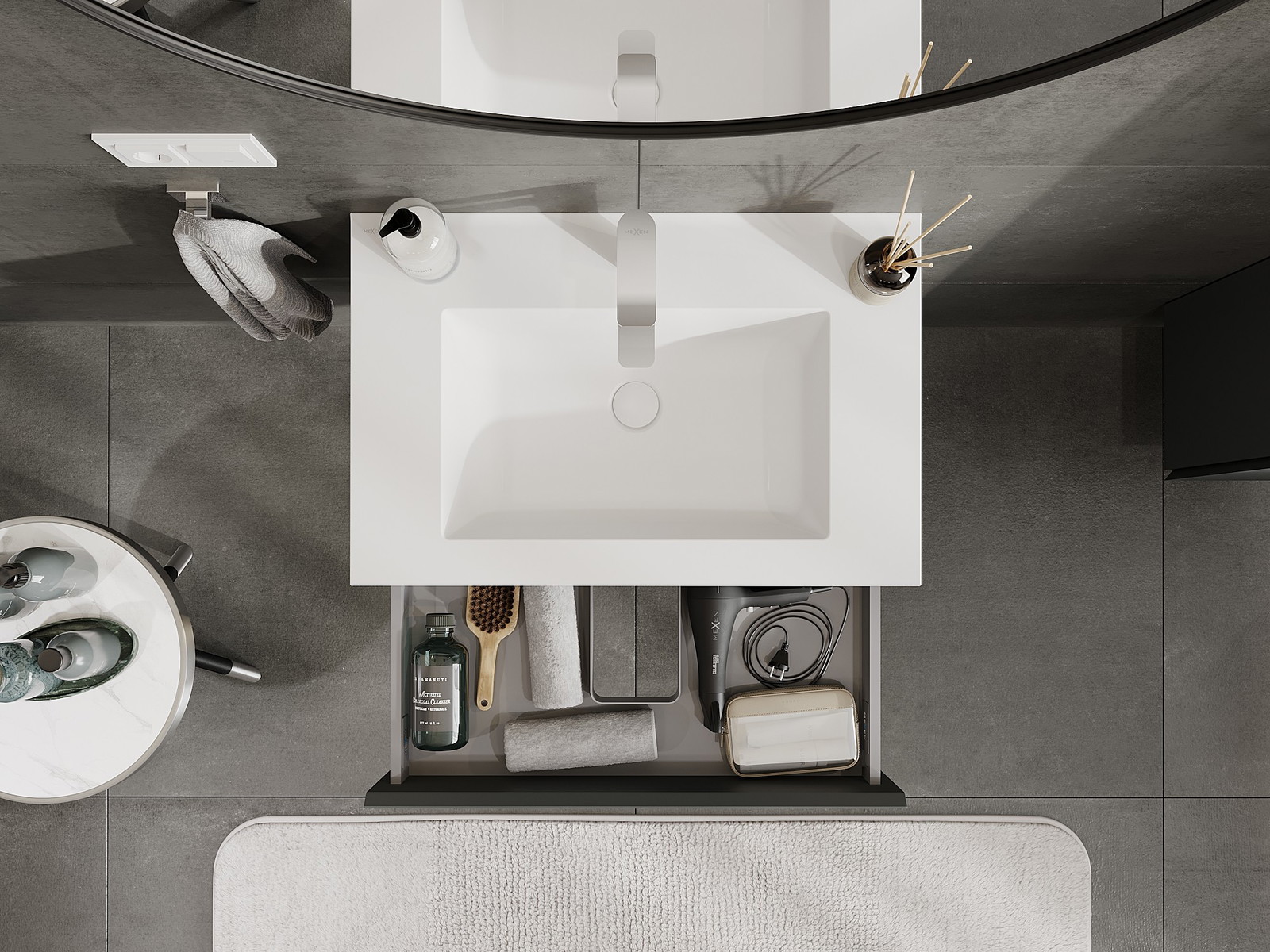 Mexen Orio kúpeľňová skrinka 70 cm s umývadlom Otis, 1 zásuvka, grafit mat/biela mat - 91A10-07023-1-BF66-W18M01