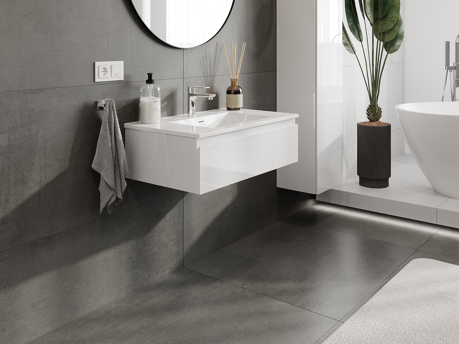 Vďaka pevným materiálom, precíznemu prevedeniu a moderným technologickým riešeniam, produkt poskytuje pohodlie používania, odolnosť voči vlhkosti a zmenám teploty, ako aj elegantný vzhľad, ktorý sa hodí k rôznym štýlom kúpeľní.