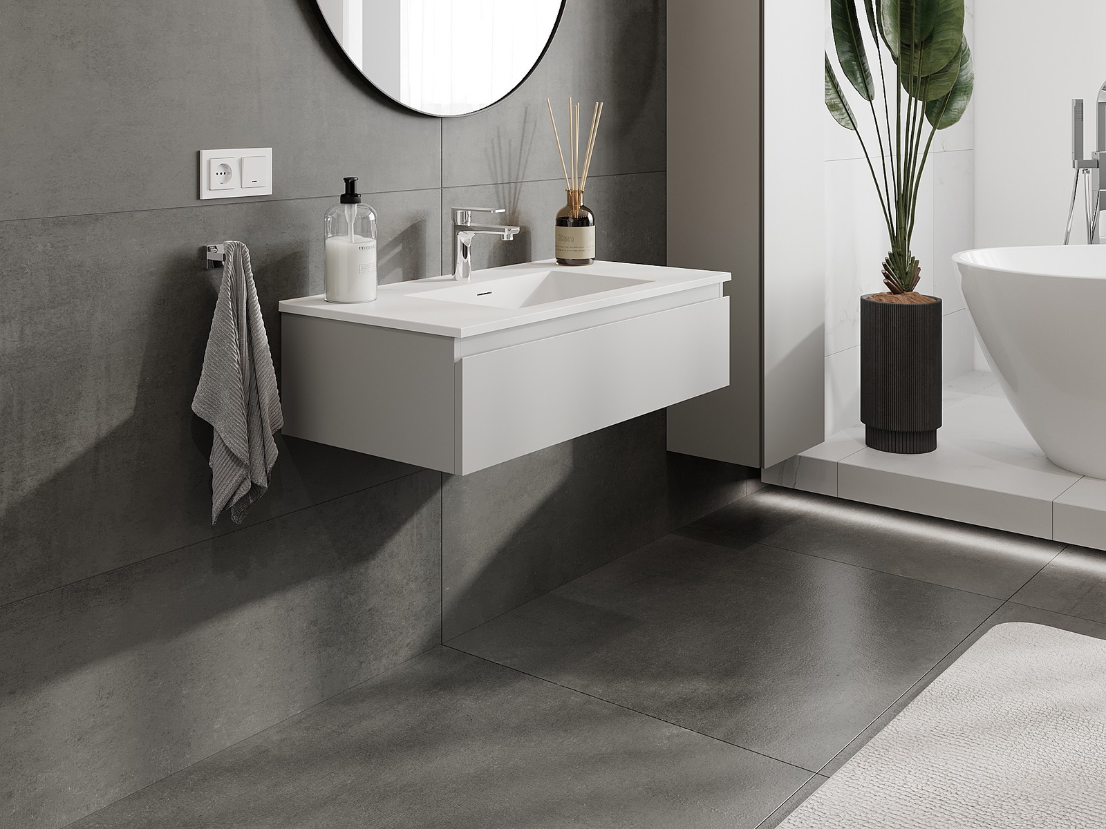 Vďaka pevným materiálom, precíznemu prevedeniu a moderným technologickým riešeniam, produkt poskytuje pohodlie používania, odolnosť voči vlhkosti a zmenám teploty, ako aj elegantný vzhľad, ktorý sa hodí k rôznym štýlom kúpeľní.