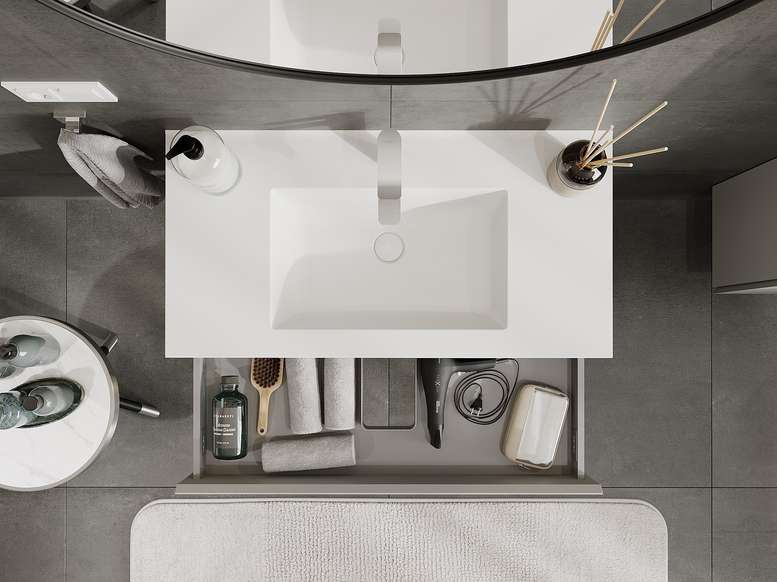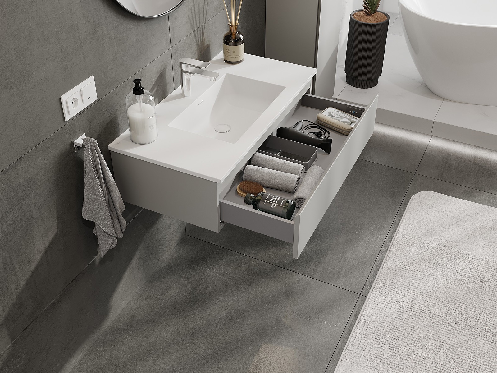 Mexen Orio kúpeľňová skrinka 90 cm s umývadlom Otis, 1 zásuvka, sivá matná/biela matná - 91A10-09023-1-BF62-W18M01