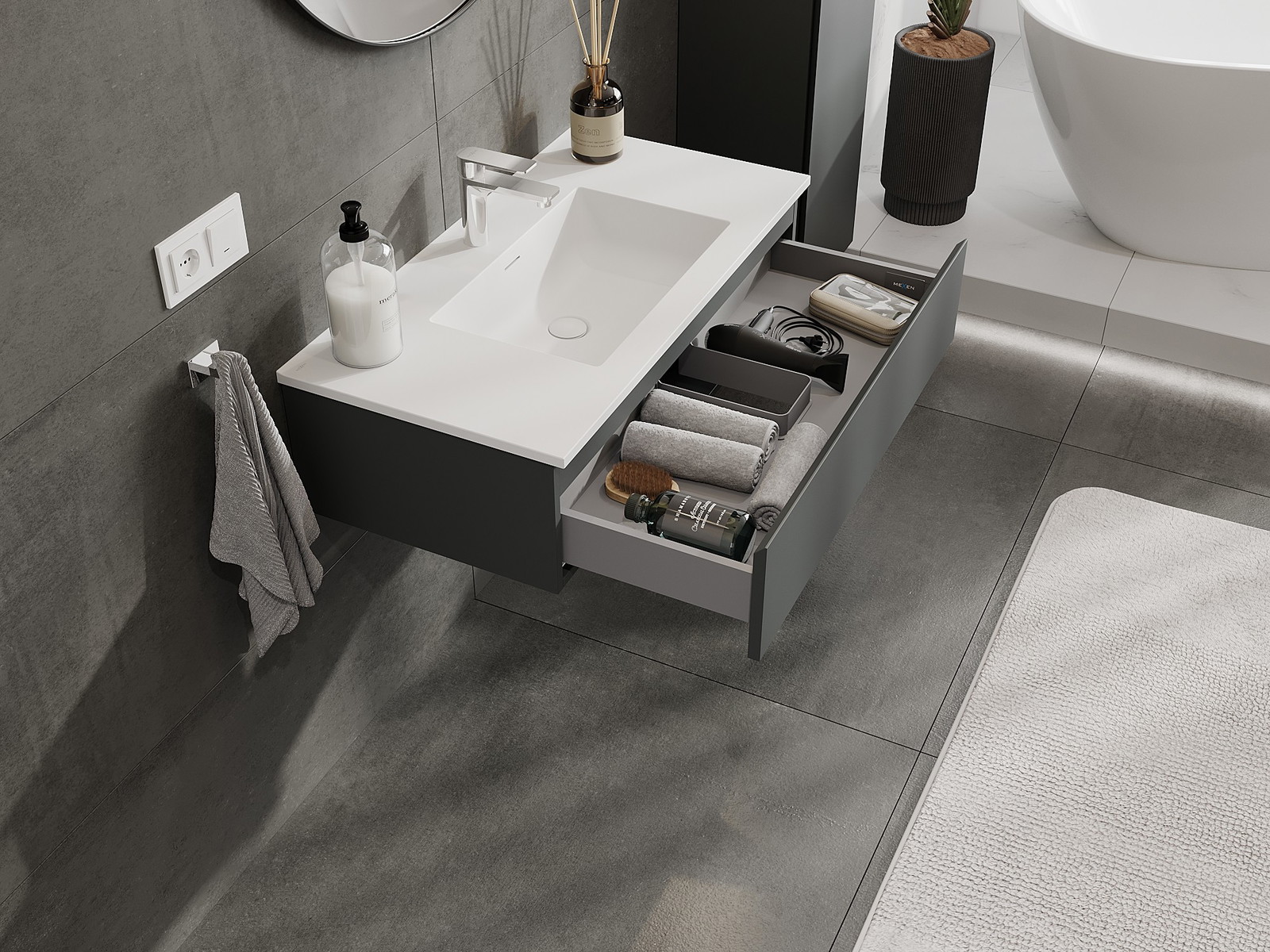 Mexen Orio kúpeľňová skrinka 90 cm s umývadlom Otis, 1 zásuvka, grafit mat/biela mat - 91A10-09023-1-BF66-W18M01