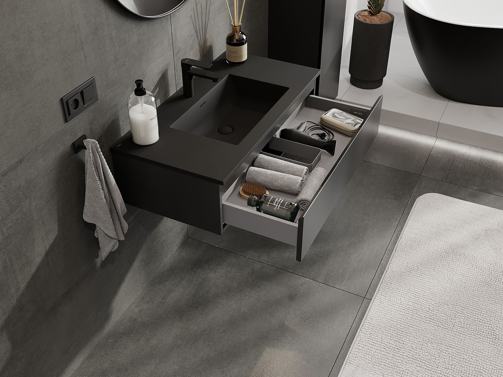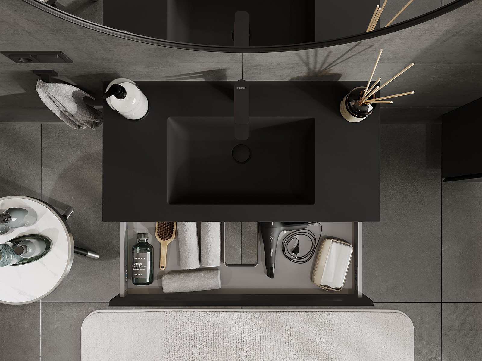 Mexen Orio kúpeľňová skrinka 90 cm s umývadlom Otis, 1 zásuvka, čierna matná - 91A10-09023-1-BF71-W18M71