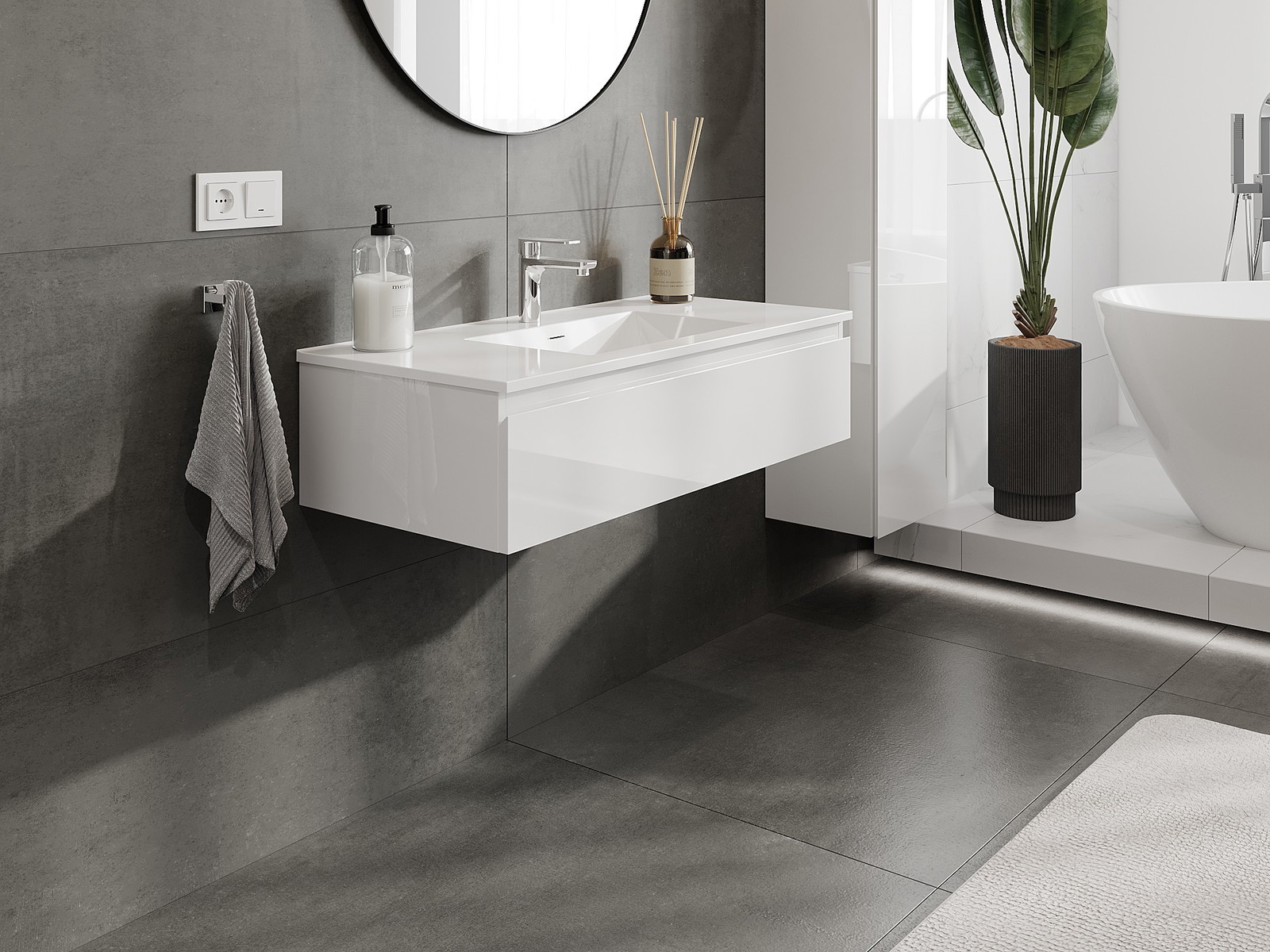 Vďaka pevným materiálom, precíznemu prevedeniu a moderným technologickým riešeniam, produkt poskytuje pohodlie používania, odolnosť voči vlhkosti a zmenám teploty, ako aj elegantný vzhľad, ktorý sa hodí k rôznym štýlom kúpeľní.