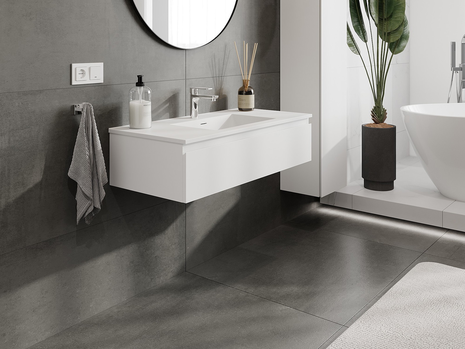 Vďaka pevným materiálom, precíznemu prevedeniu a moderným technologickým riešeniam, produkt poskytuje pohodlie používania, odolnosť voči vlhkosti a zmenám teploty, ako aj elegantný vzhľad, ktorý sa hodí k rôznym štýlom kúpeľní.