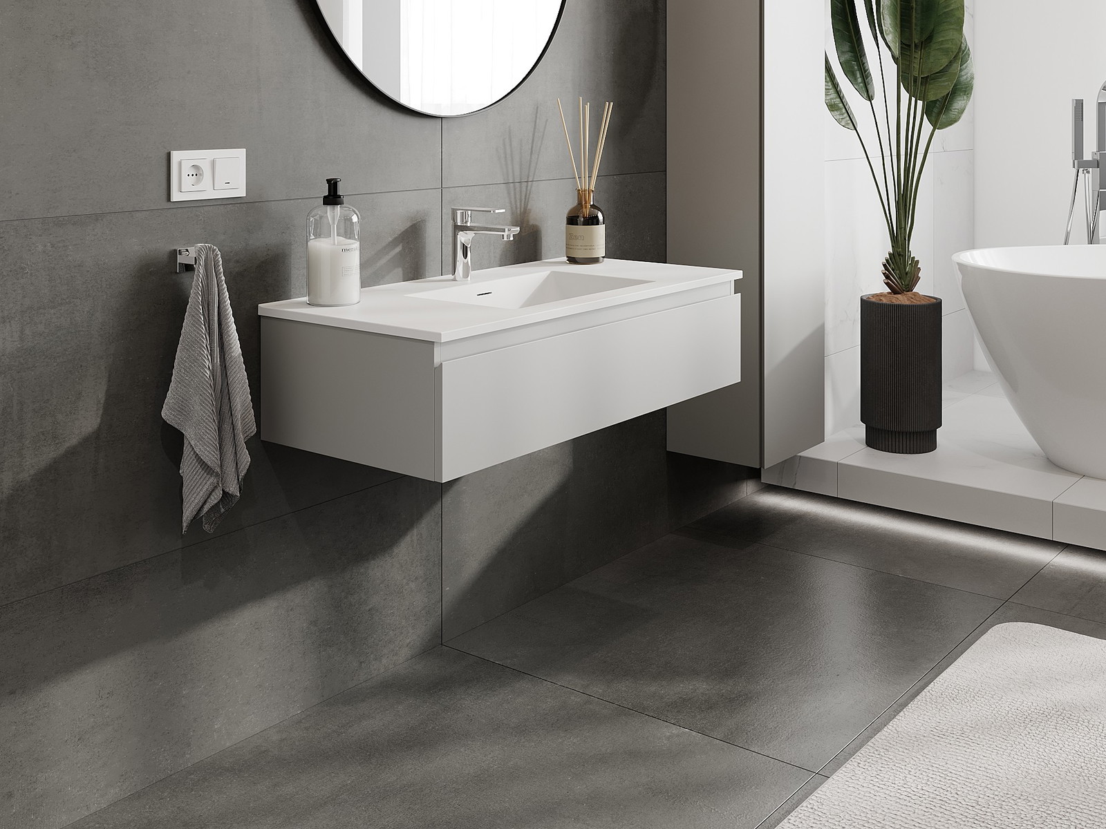 Vďaka pevným materiálom, precíznemu prevedeniu a moderným technologickým riešeniam, produkt poskytuje pohodlie používania, odolnosť voči vlhkosti a zmenám teploty, ako aj elegantný vzhľad, ktorý sa hodí k rôznym štýlom kúpeľní.