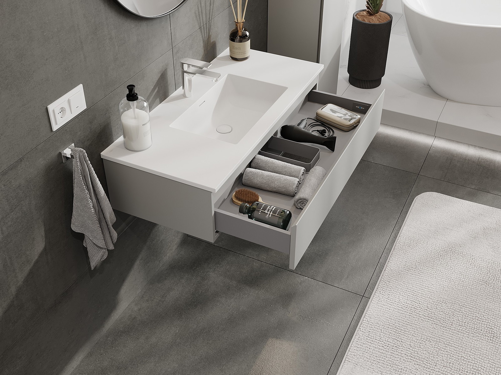 Mexen Orio kúpeľňová skrinka 100 cm s umývadlom Otis, 1 zásuvka, sivá matná/biela matná - 91A10-10023-1-BF62-W18M01