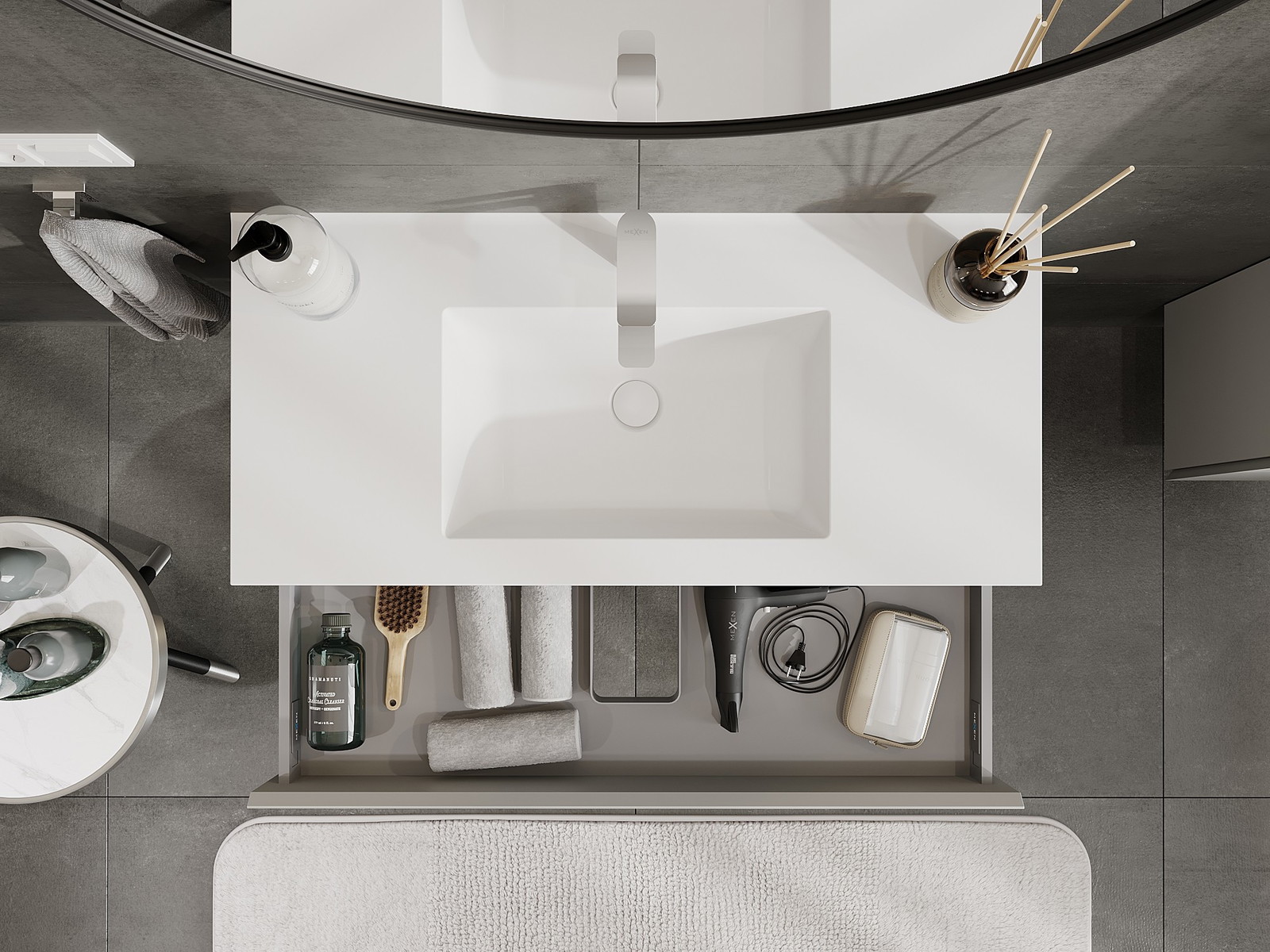 Výrez v zásuvke je navrhnutý tak, aby pojal sifón, ktorý je nevyhnutný v umývadlových inštaláciách. Vďaka tomu môže byť nábytok namontovaný plne funkčne, bez nutnosti vzdávať sa priestoru v zásuvke v prospech inštalácie.