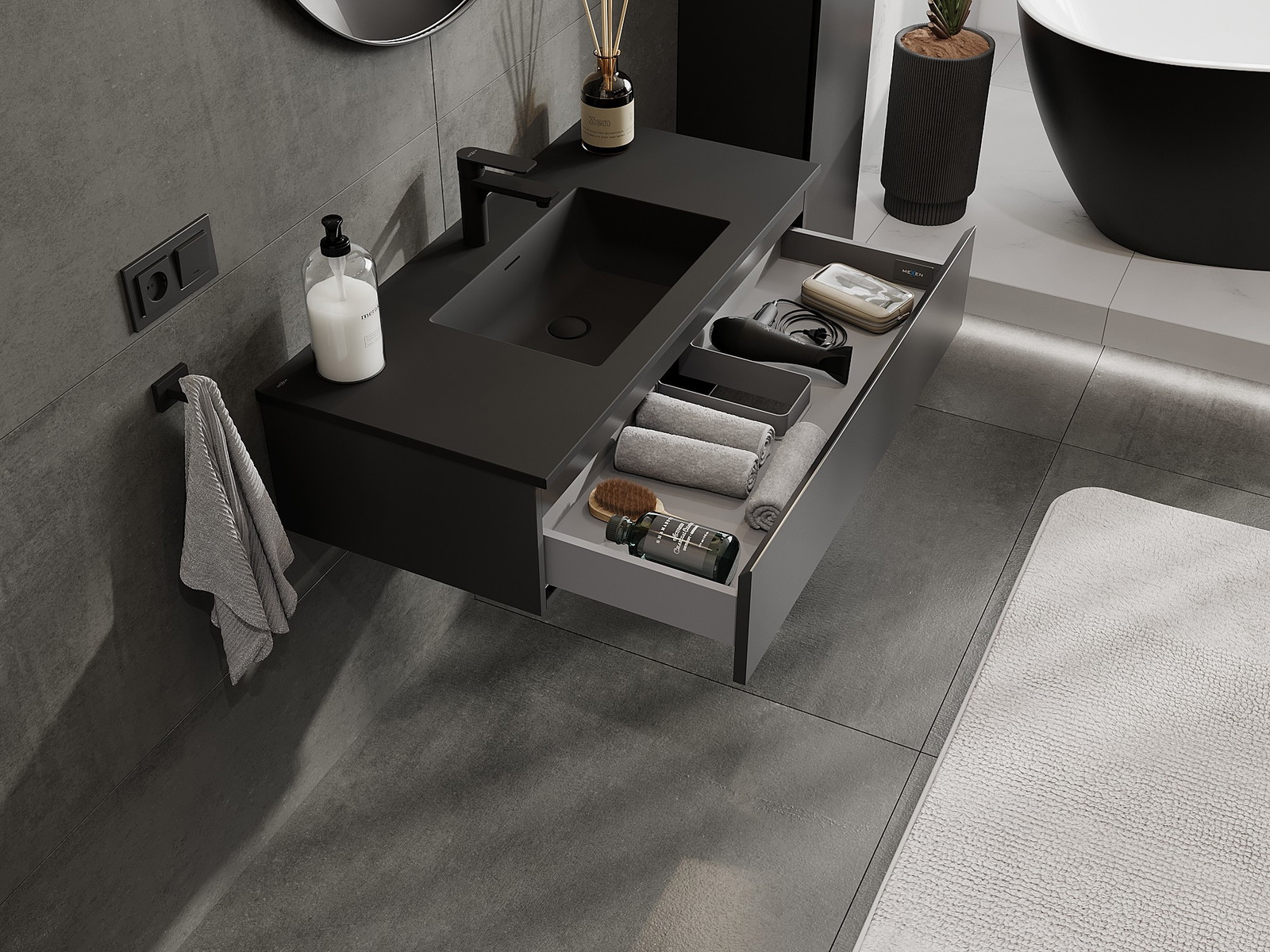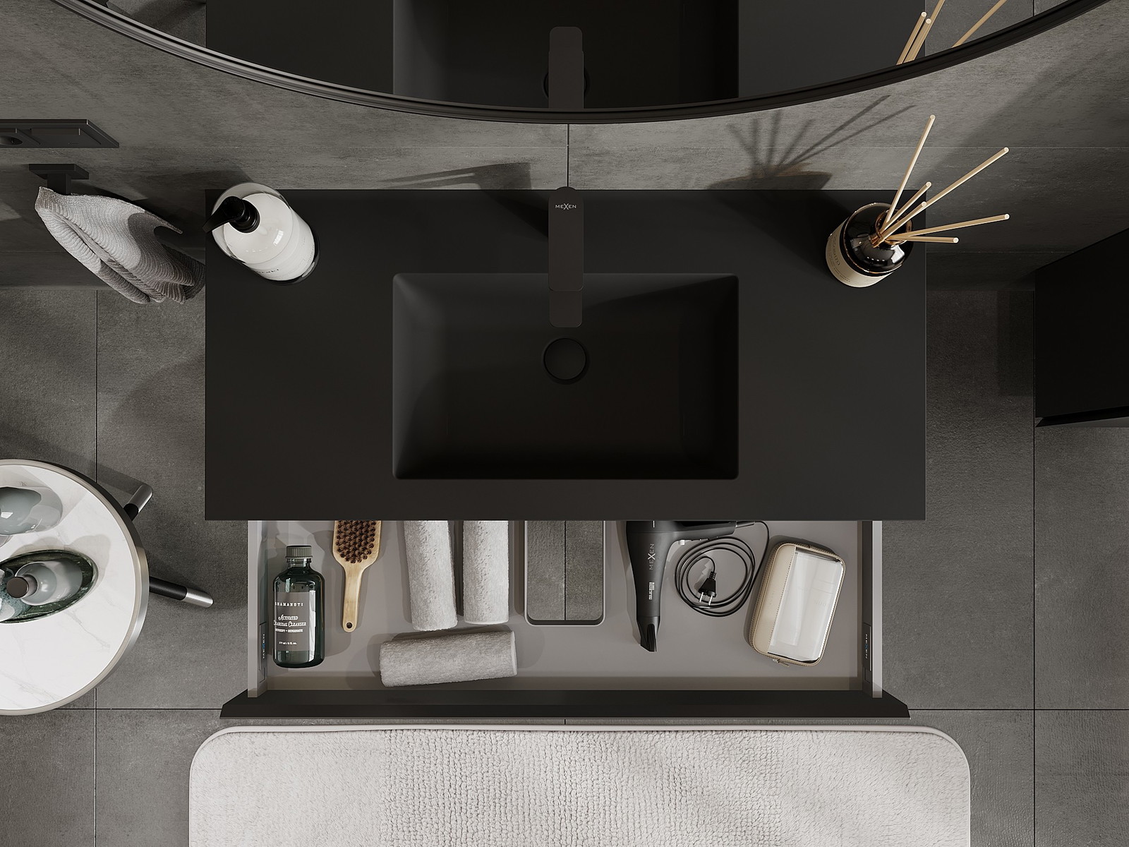 Mexen Orio kúpeľňová skrinka 100 cm s umývadlom Otis, 1 zásuvka, čierna matná - 91A10-10023-1-BF71-W18M71