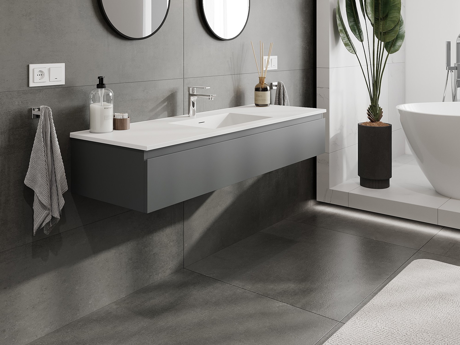 Vďaka pevným materiálom, precíznemu prevedeniu a moderným technologickým riešeniam, produkt poskytuje pohodlie používania, odolnosť voči vlhkosti a zmenám teploty, ako aj elegantný vzhľad, ktorý sa hodí k rôznym štýlom kúpeľní.