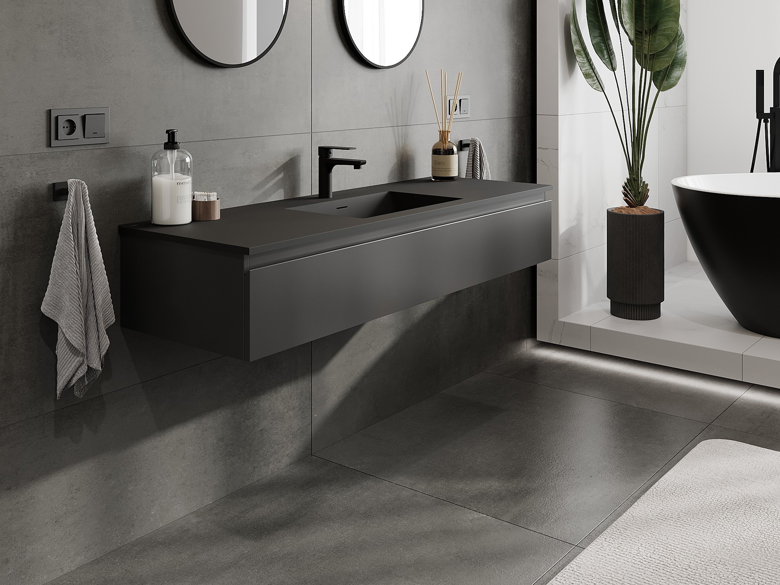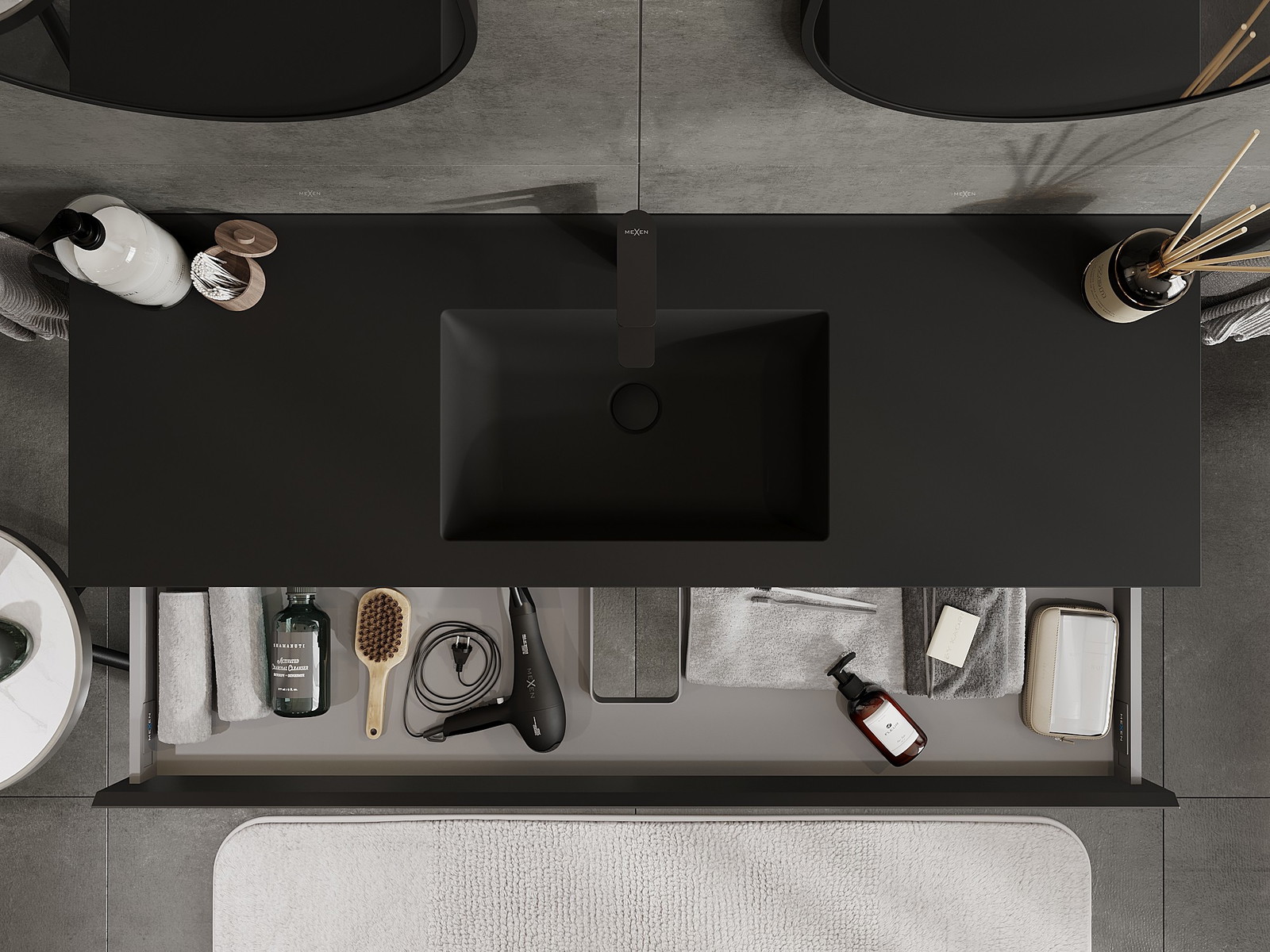 Mexen Orio kúpeľňová skrinka 140 cm s umývadlom Otis, 1 zásuvka, čierna matná - 91A10-14023-1-BF71-W18M71