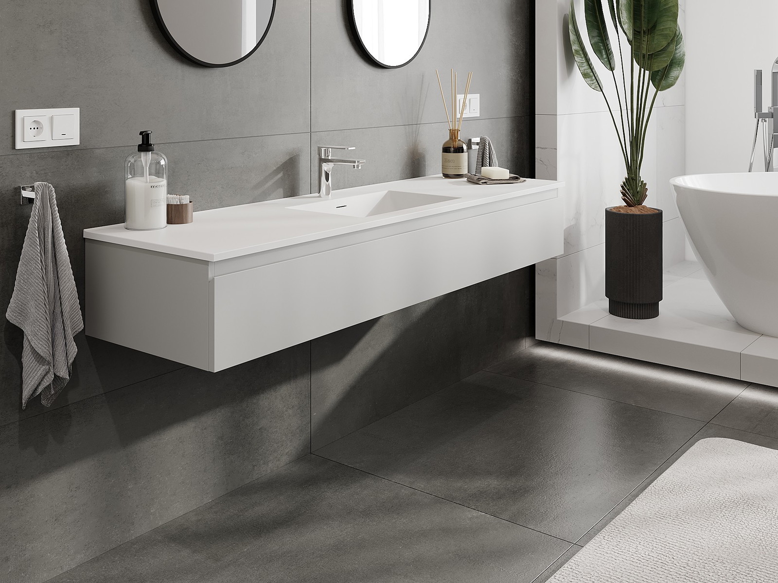 Vďaka pevným materiálom, precíznemu prevedeniu a moderným technologickým riešeniam, produkt poskytuje pohodlie používania, odolnosť voči vlhkosti a zmenám teploty, ako aj elegantný vzhľad, ktorý sa hodí k rôznym štýlom kúpeľní.