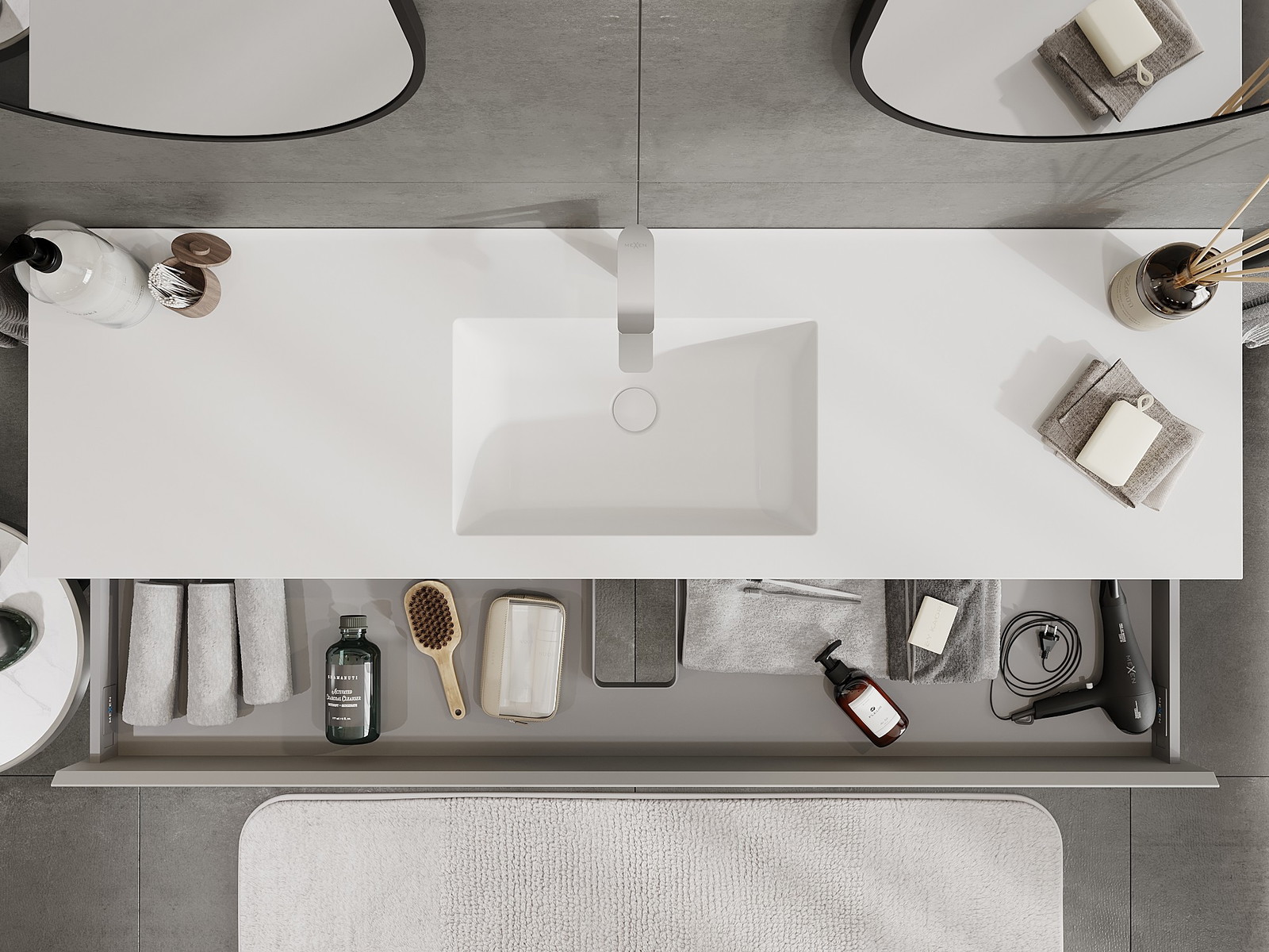 Mexen Orio kúpeľňová skrinka 160 cm s umývadlom Otis, 1 zásuvka, sivá matná/biela matná - 91A10-16023-1-BF62-W18M01