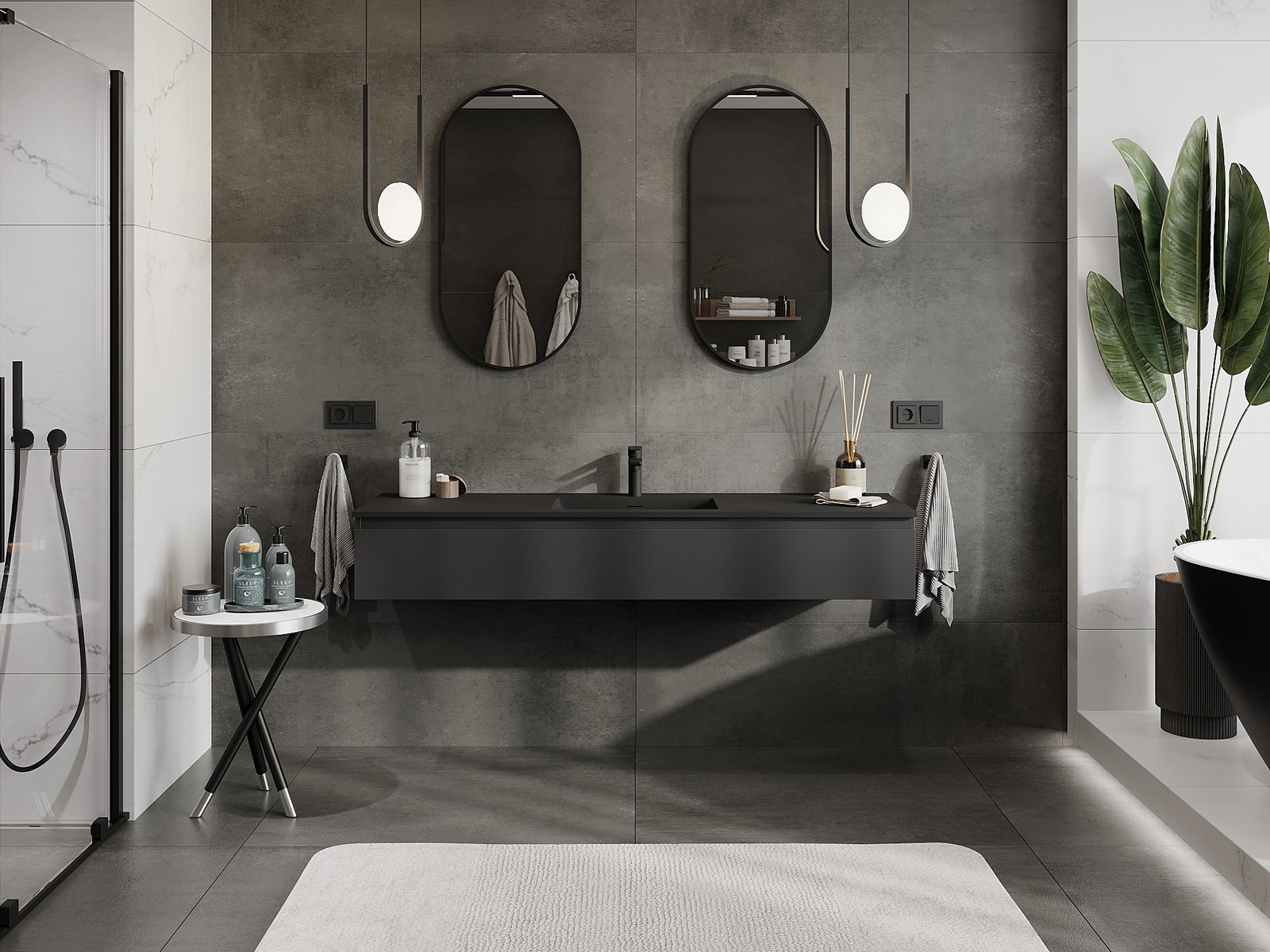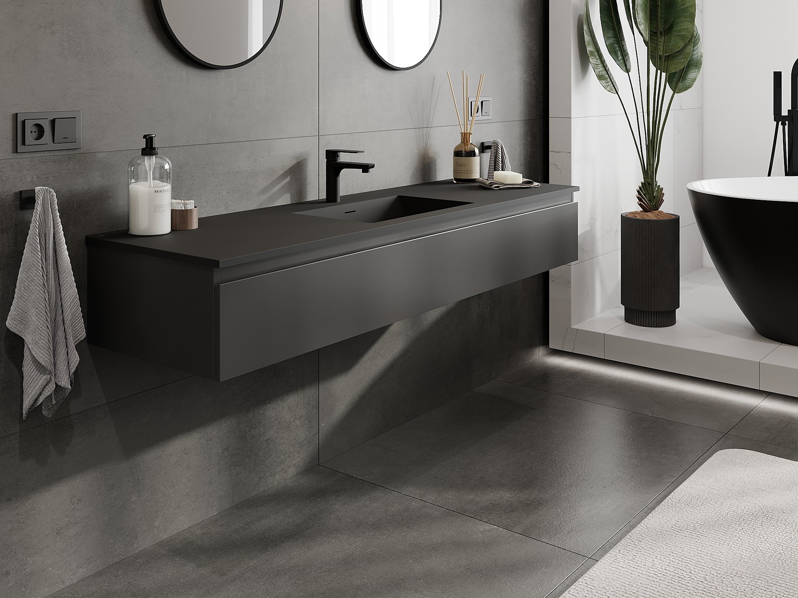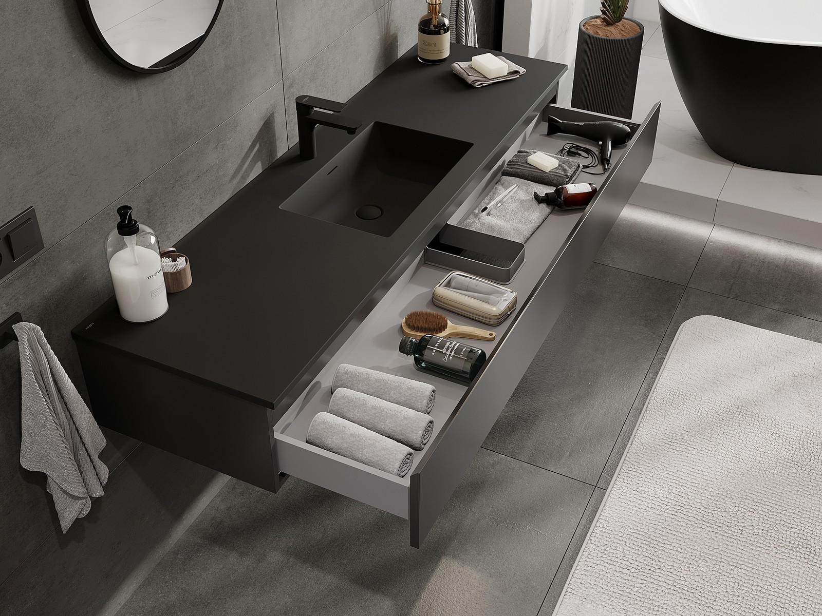Mexen Orio kúpeľňová skrinka 160 cm s umývadlom Otis, 1 zásuvka, čierna matná - 91A10-16023-1-BF71-W18M71