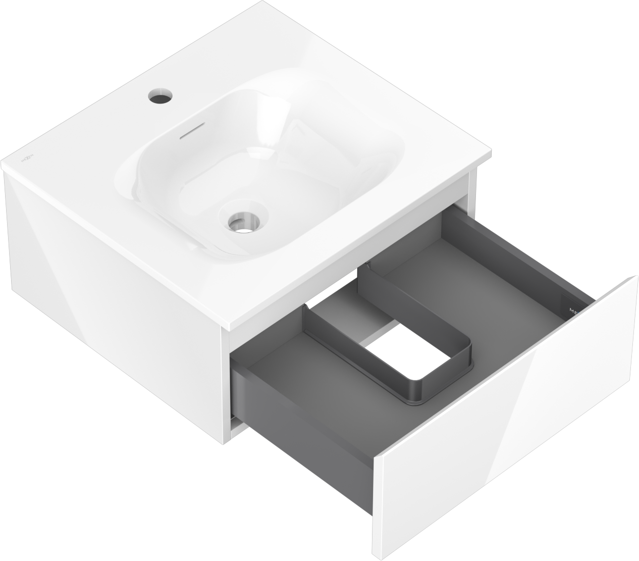 Výrez v zásuvke je navrhnutý tak, aby pojal sifón, ktorý je nevyhnutný v umývadlových inštaláciách. Vďaka tomu môže byť nábytok namontovaný plne funkčne, bez nutnosti vzdávať sa priestoru v zásuvke v prospech inštalácie.