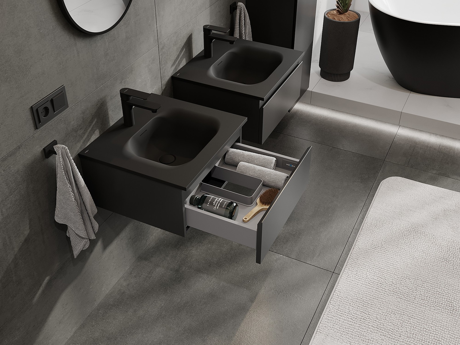 Mexen Orio kúpeľňová skrinka 50 cm s umývadlom Vela, 1 zásuvka, čierny mat - 91A10-05023-1-BF71-W23M71