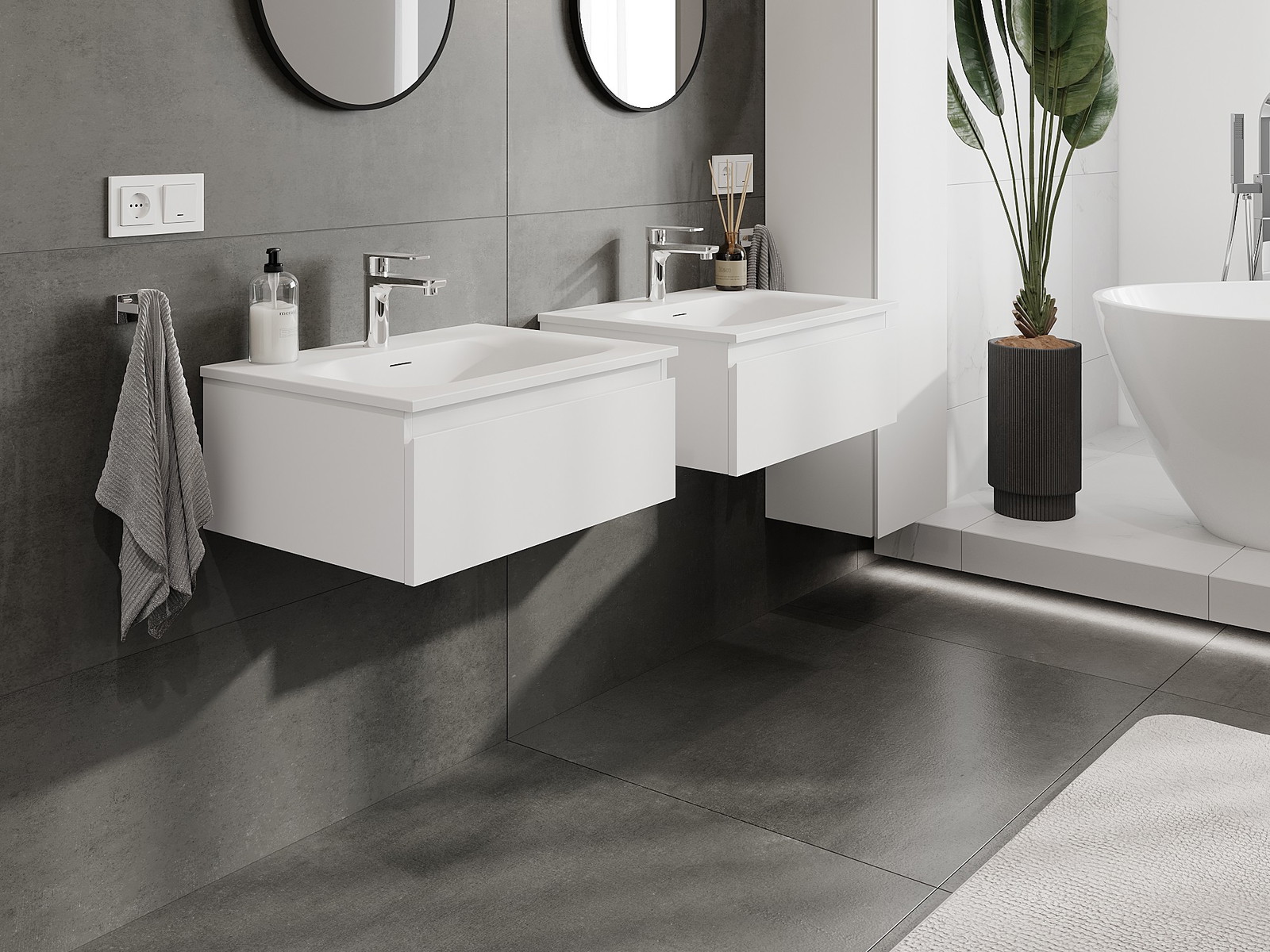 Naše modulárne kúpeľňové nábytkové prvky možno kombinovať v rôznych farebných konfiguráciách, čo umožňuje úplnú personalizáciu. Môžete si vybrať vzhľad aj funkcie jednotlivých prvkov, čo umožňuje prispôsobiť nábytok vašim vlastným štýlovým a používateľským preferenciám.