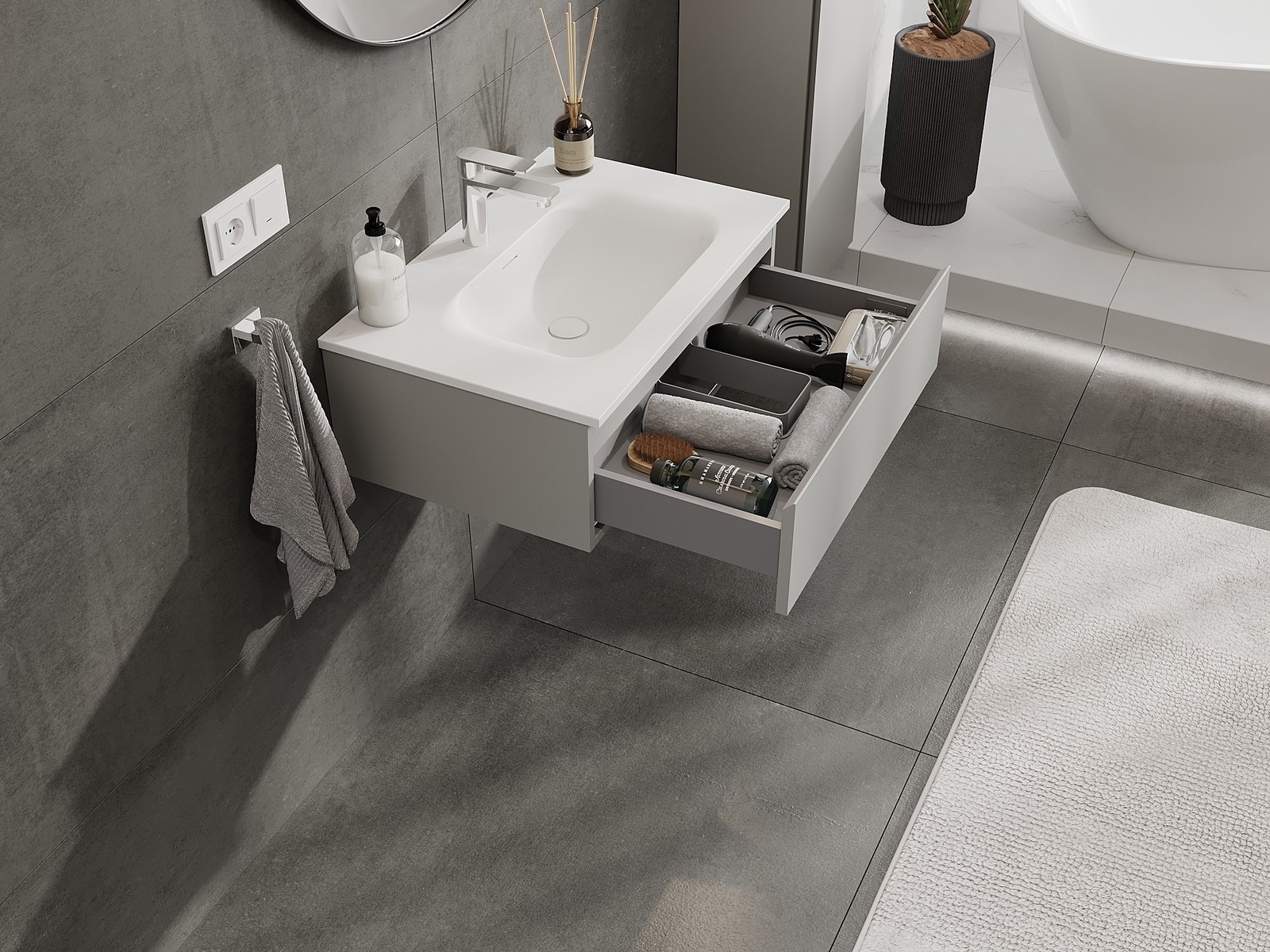 Mexen Orio kúpeľňová skrinka 70 cm s umývadlom Vela, 1 zásuvka, sivá mat/biela mat - 91A10-07023-1-BF62-W23M01