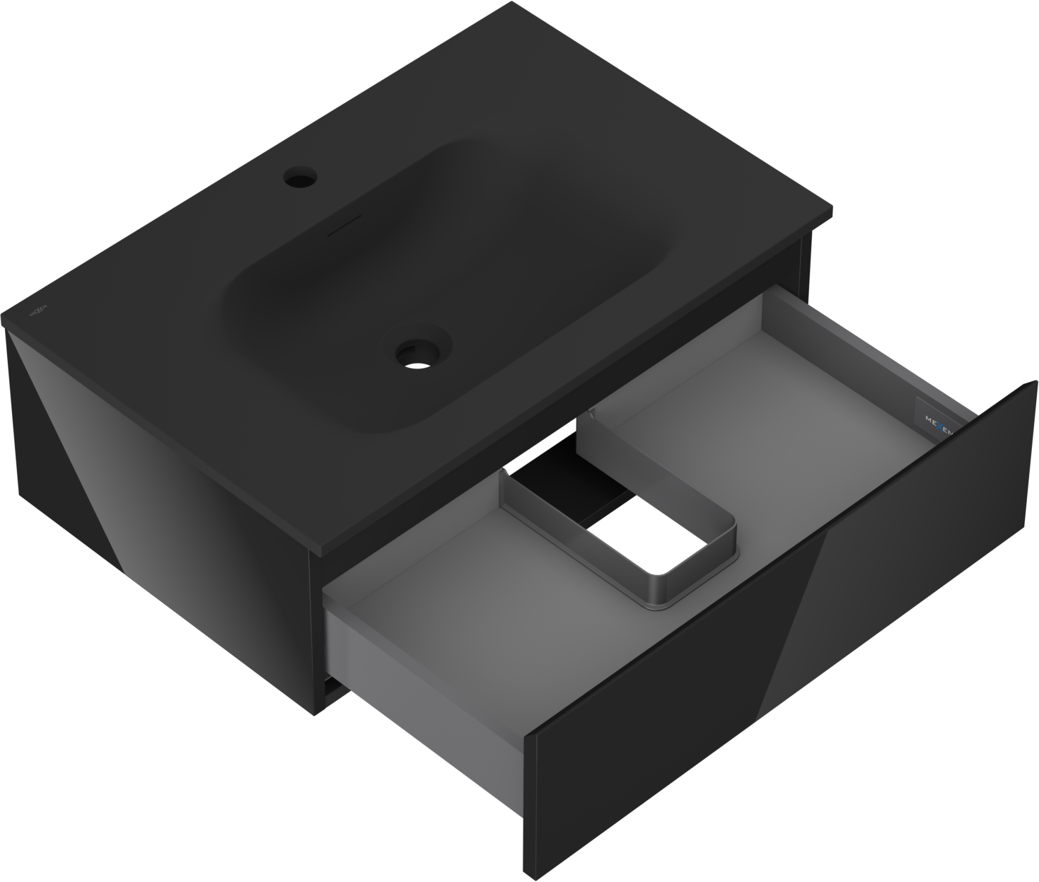 Mexen Orio kúpeľňová skrinka 70 cm s umývadlom Vela, 1 zásuvka, čierny lesk/čierny mat - 91A10-07023-1-BF70-W23M71
