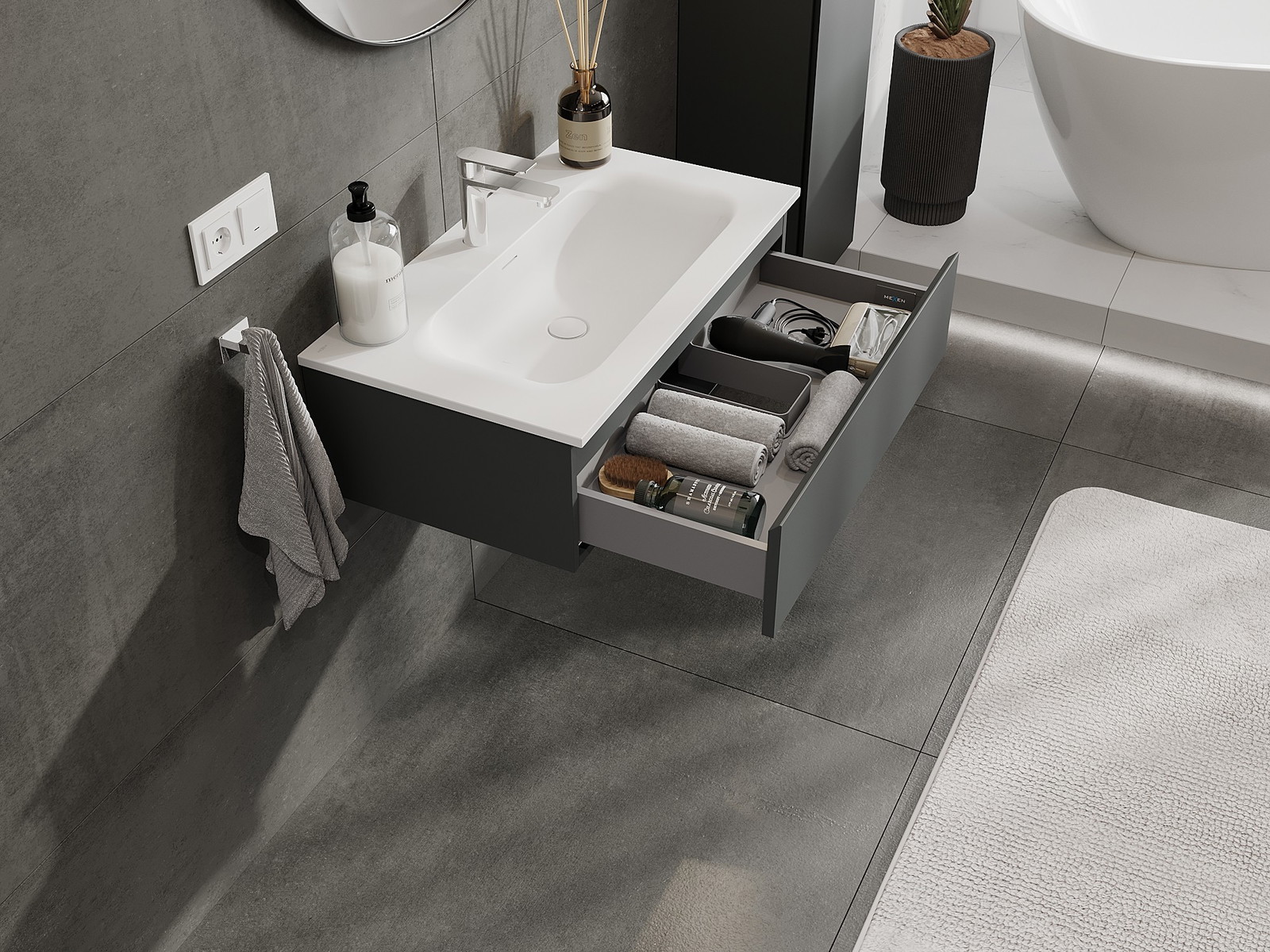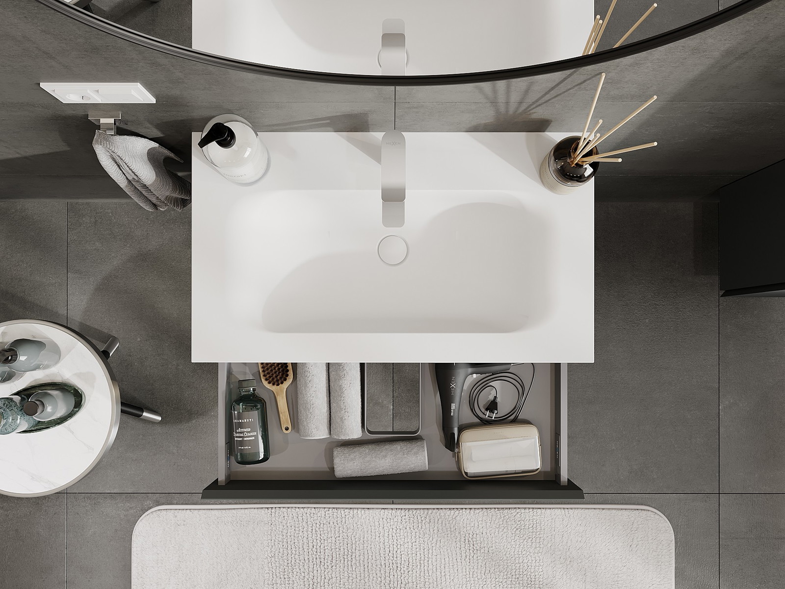 Mexen Orio kúpeľňová skrinka 80 cm s umývadlom Vela, 1 zásuvka, grafitová matná/biela matná - 91A10-08023-1-BF66-W23M01