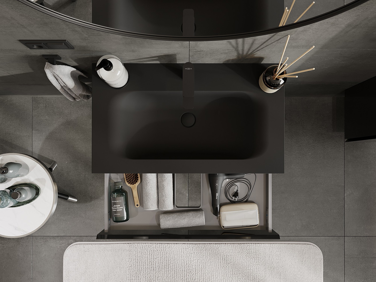 Mexen Orio kúpeľňová skrinka 80 cm s umývadlom Vela, 1 zásuvka, čierny lesk/čierny mat - 91A10-08023-1-BF70-W23M71
